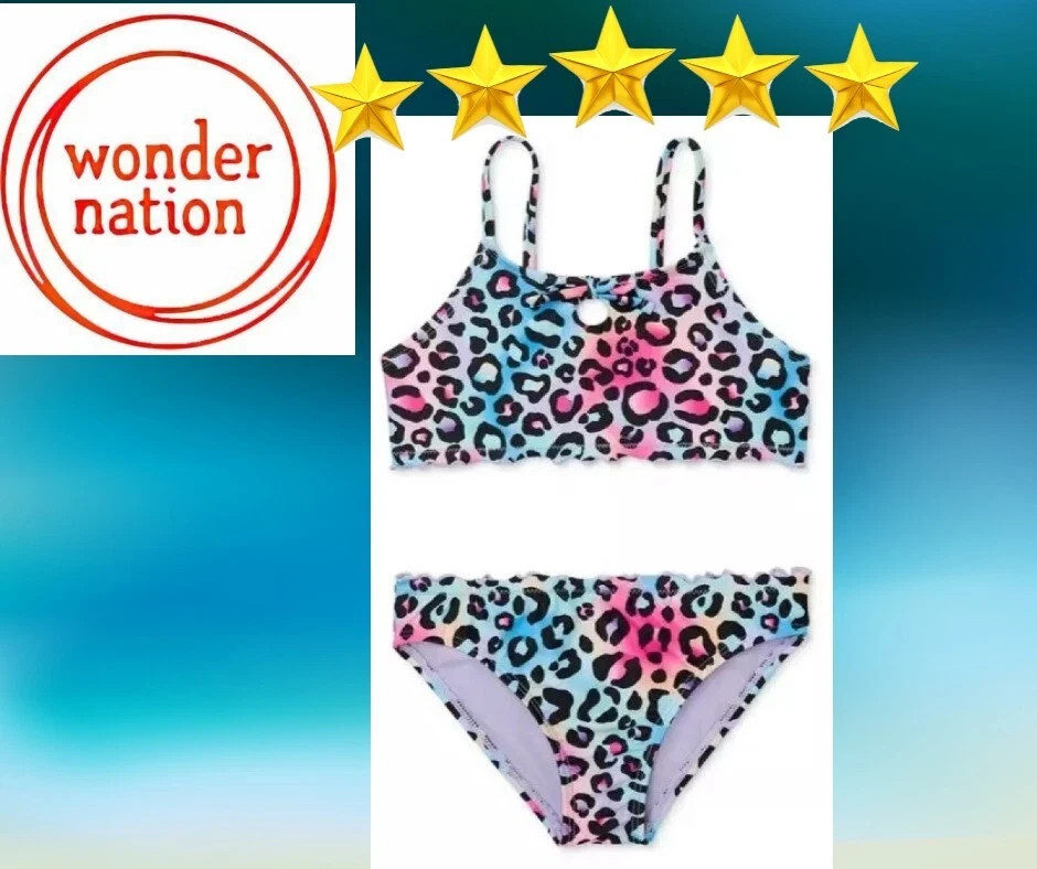 как выглядит LOT of 2 Wonder Nation Girls 2XL 18 Asymmetrical Bikini Swimsuit with UPF 50 фото