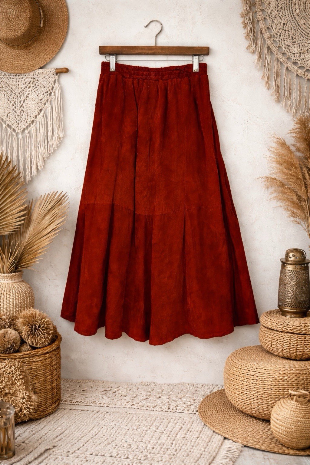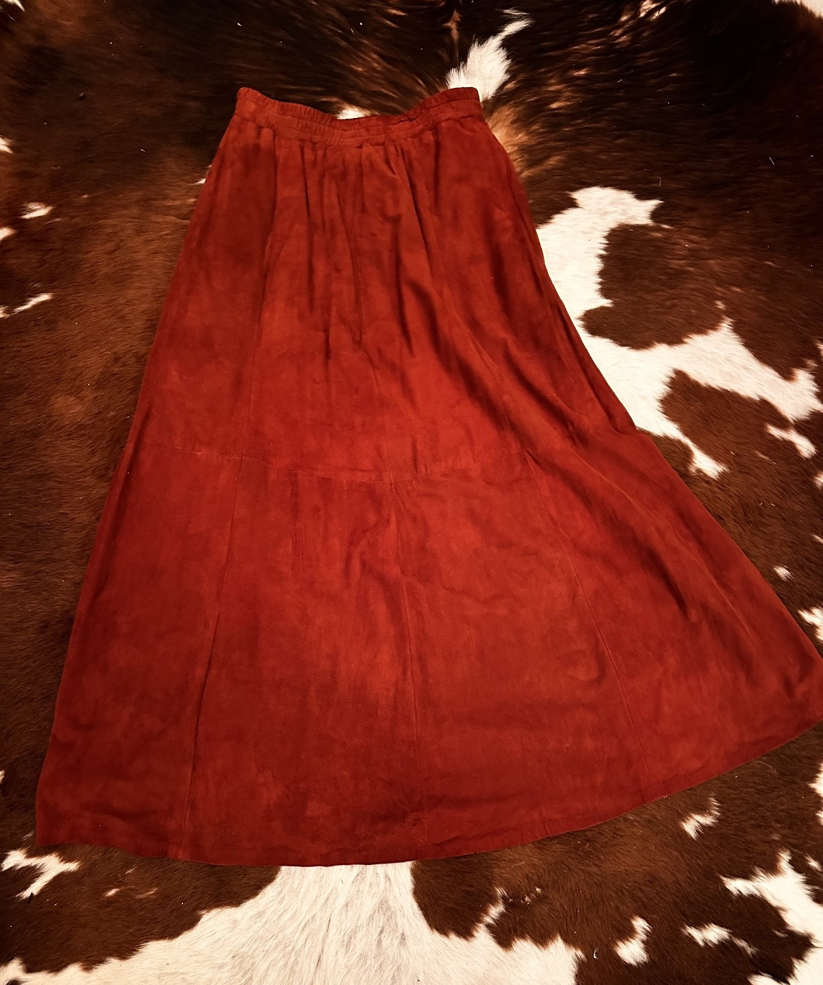 как выглядит VTG 1980 s Suede Leather Rust Skirt Western Boho Pockets Women