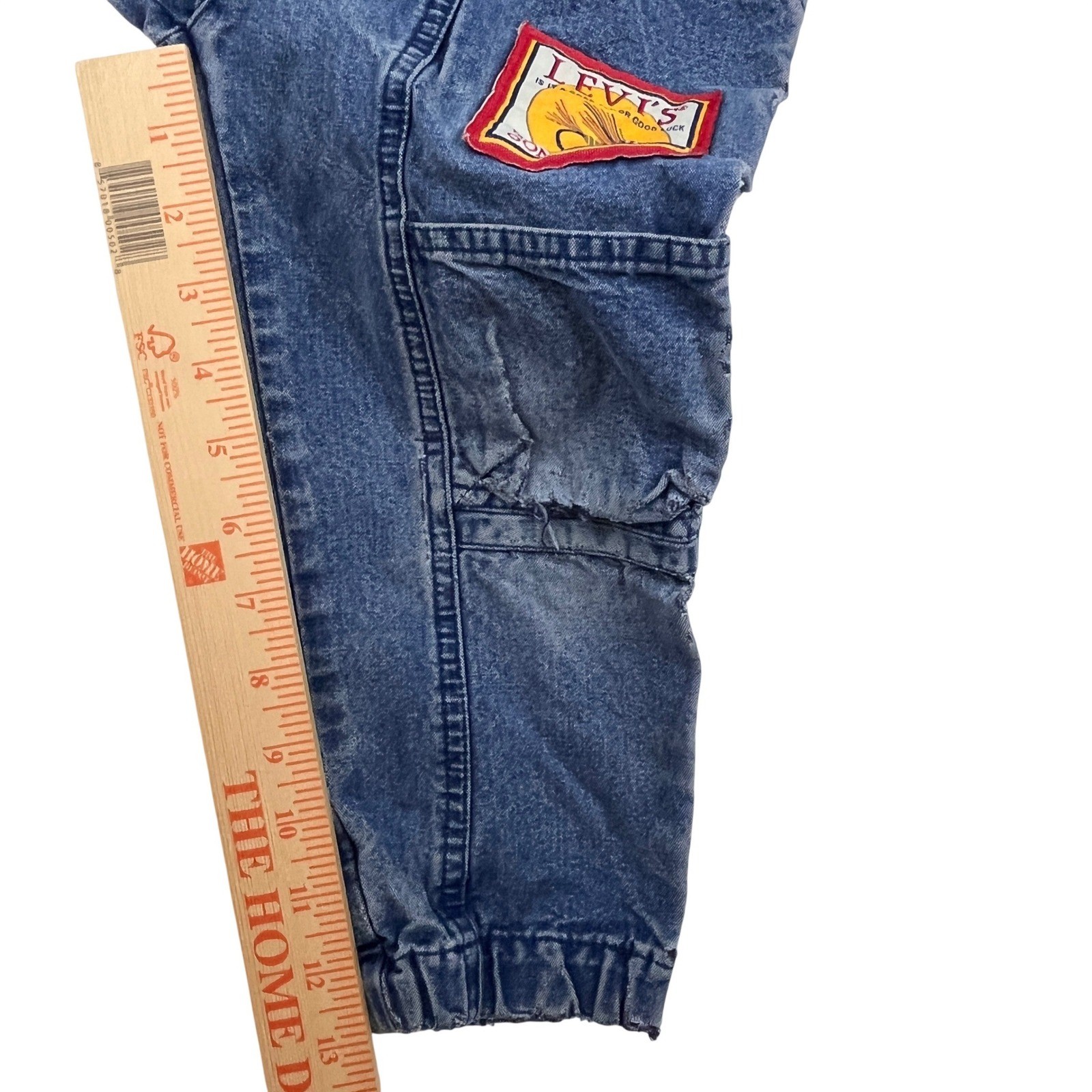 Little Levis Vintage Cargo Jeans Boys Gone Fishing Pockets Patch Size 4T FLAW