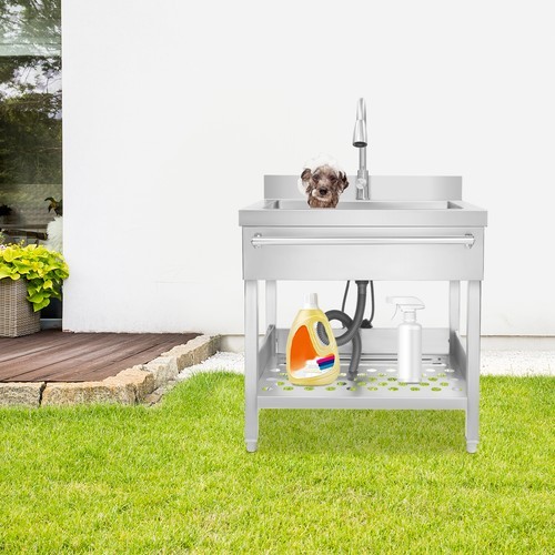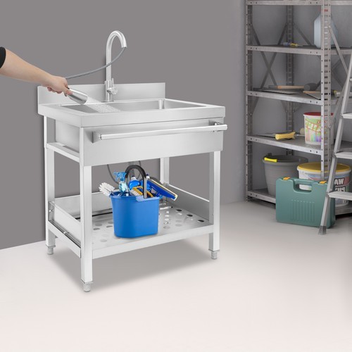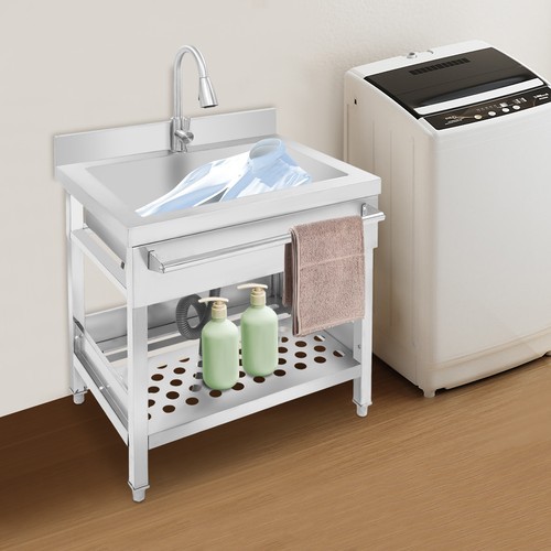 Stainless Steel Single Bowl Sink with Pull-Out Faucet Freestanding Kitchen Sink