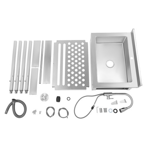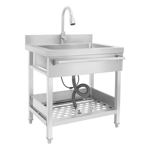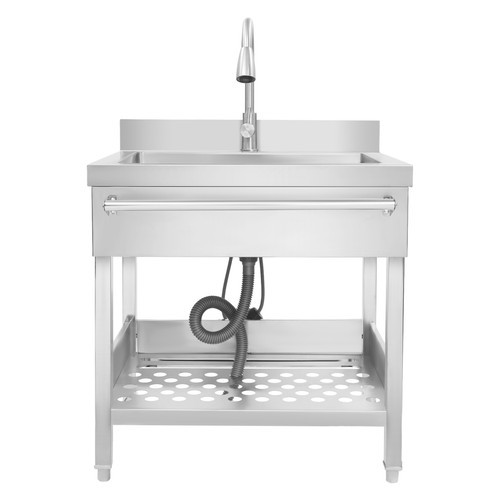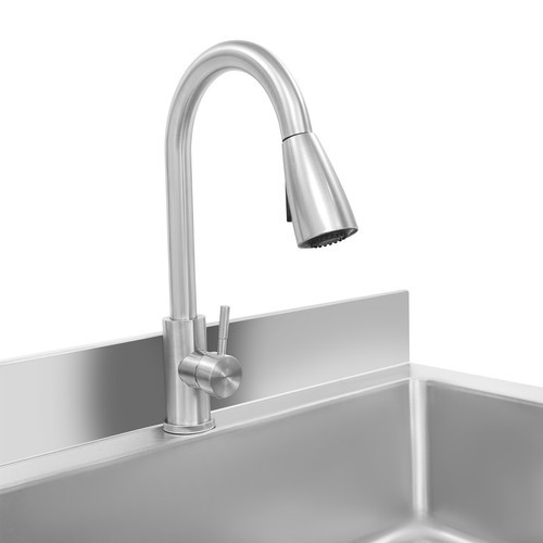 как выглядит Stainless Steel Single Bowl Sink with Pull-Out Faucet Freestanding Kitchen Sink фото