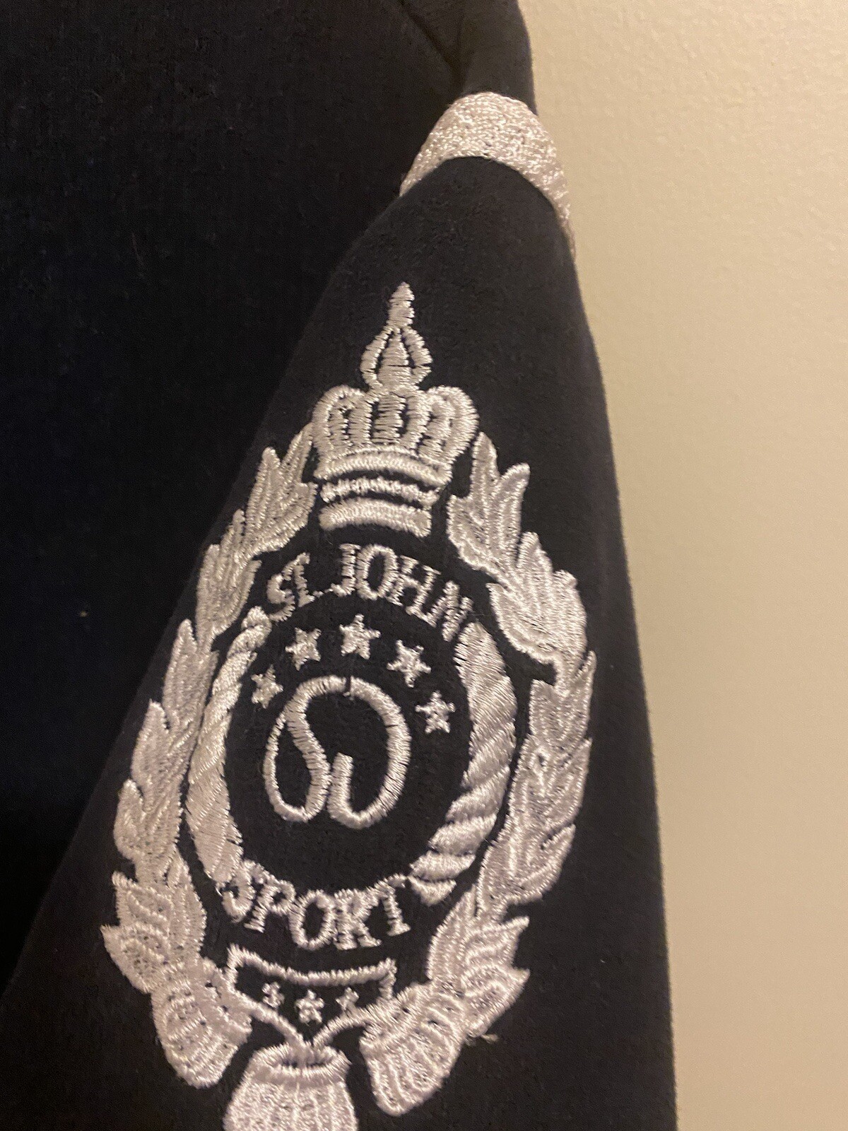 как выглядит ST JOHN Sport Vintage Navy Blue LogoWhite Trim Signature Bomber Jacket RARE Y2K фото