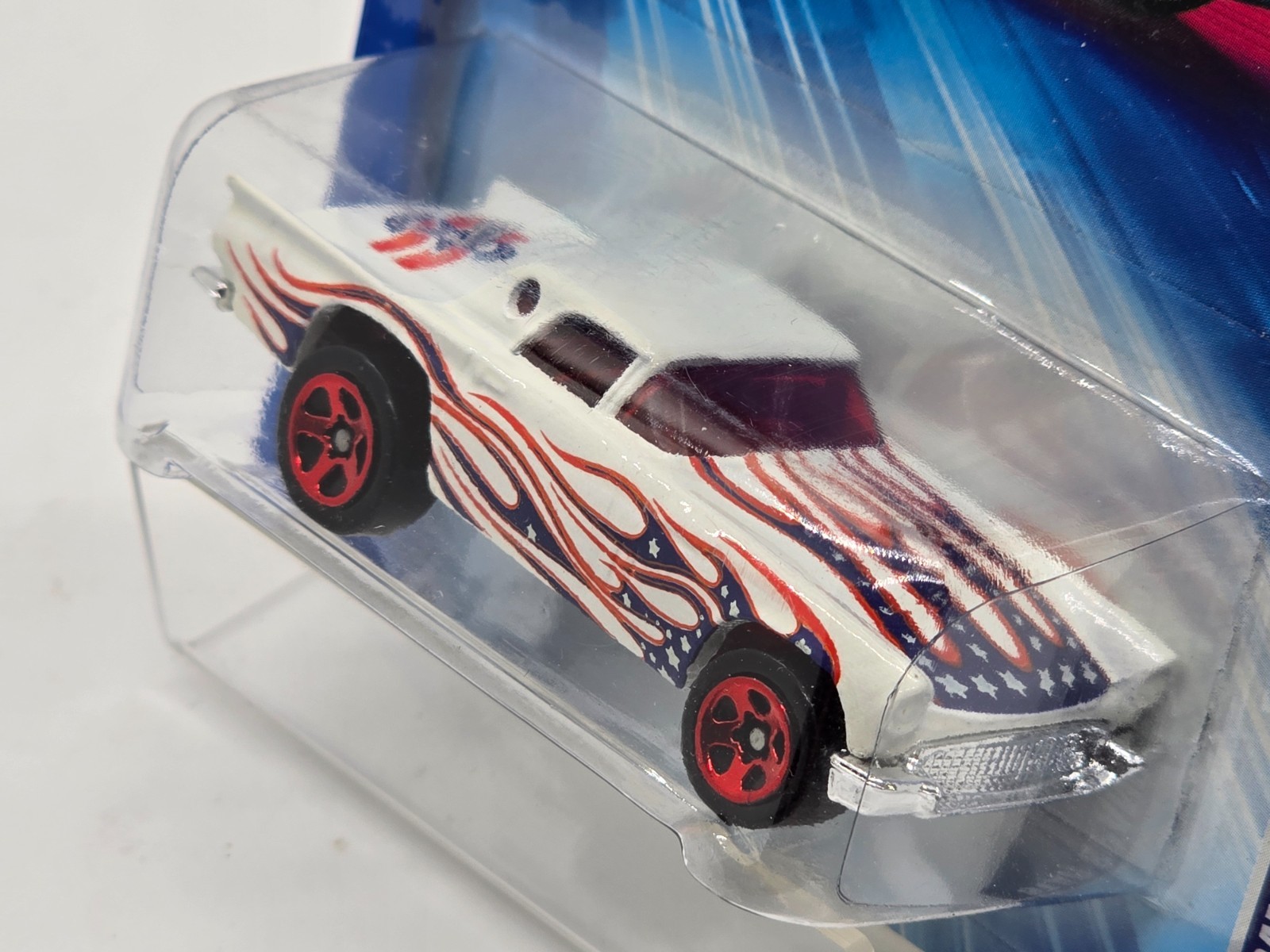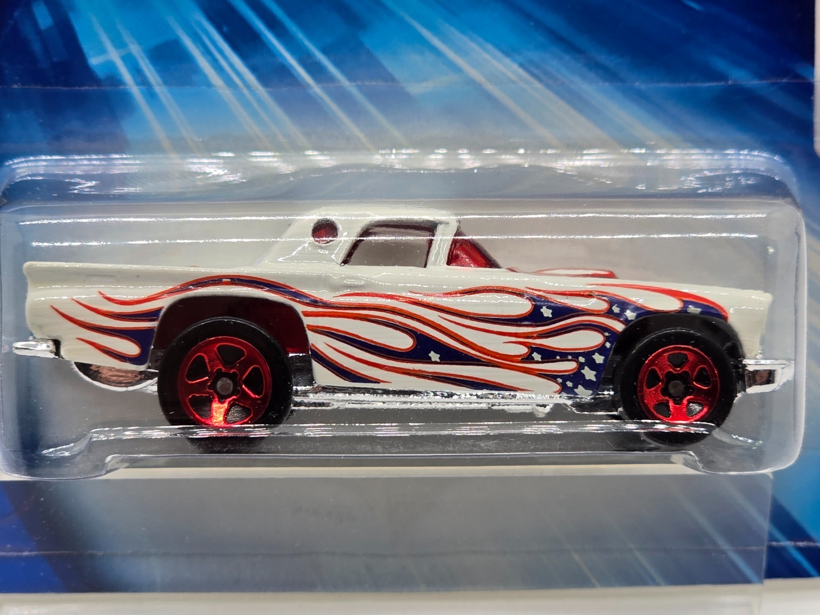 2004 Hot Wheels 124 Star Spangled 2 2/5 T-BIRD 1957 White w/Red 5 Spoke Wheels