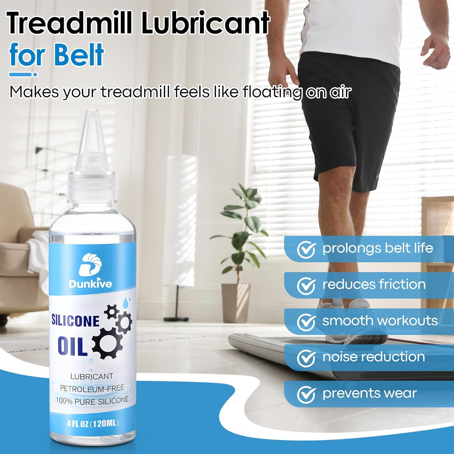 120Ml/4Oz Treadmill Lubricant 24Inch Foldable Applicator Pure Silicone Walking