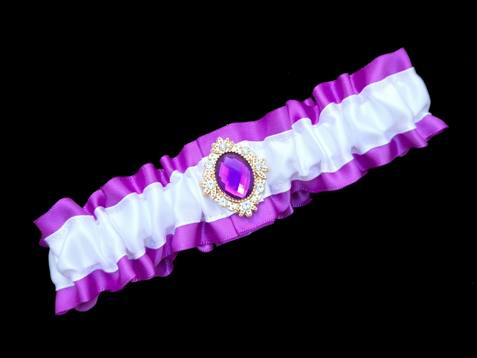 как выглядит Wedding Garter Set Purple White Satin Lace Prom Bridal Accessories Rhinestones фото