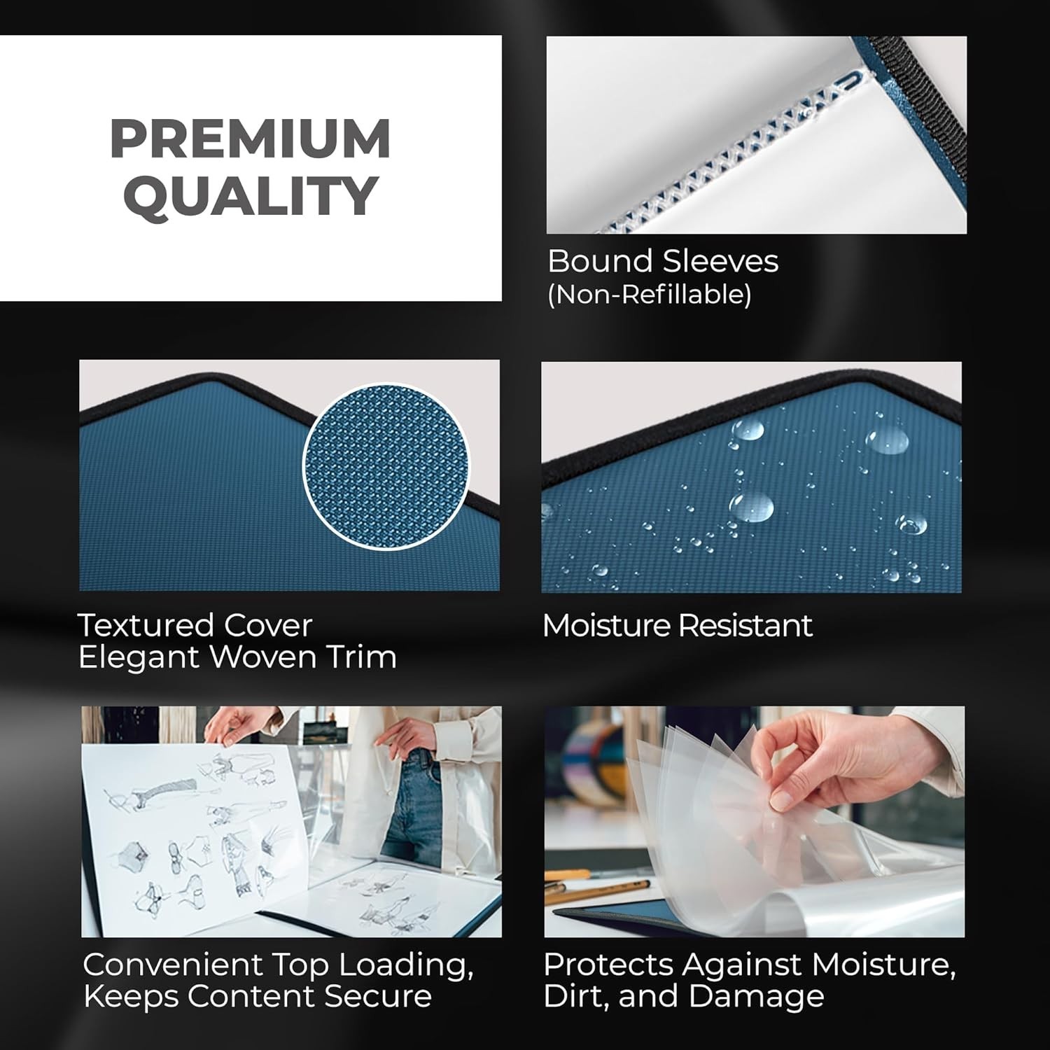 11x17 Art Portfolio Binder with Black Mounting Paper Blue, Large Portfolio Fo...