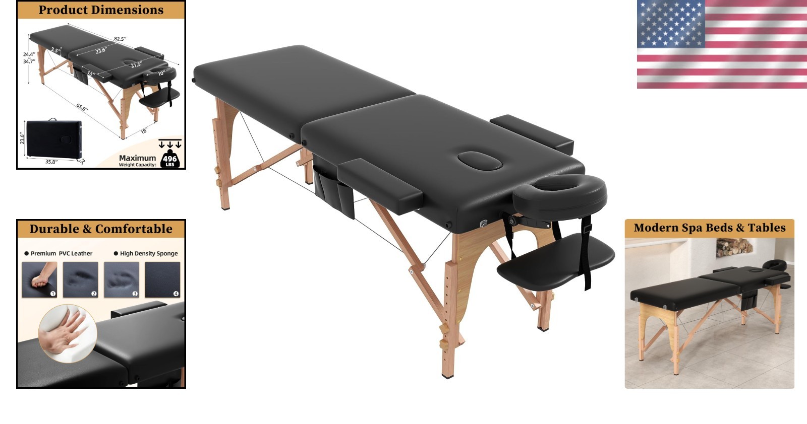 Luxury Adjustable Massage Bed Lightweight 2-Section Foldable with Accessories