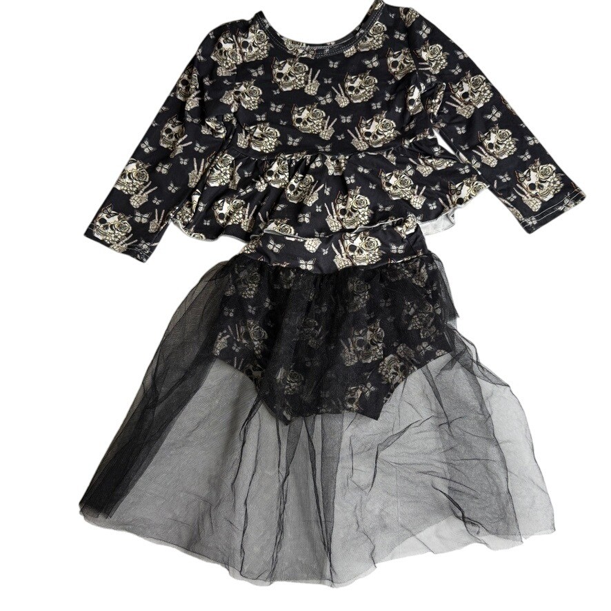 Toddler Boutique Halloween Skull Set Shirt and Tutu Size 3T