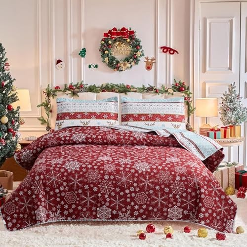 Christmas Quilt Set Full/Size Lodge Moose Reindeer Xmas Queen Xmas Stripe Elk