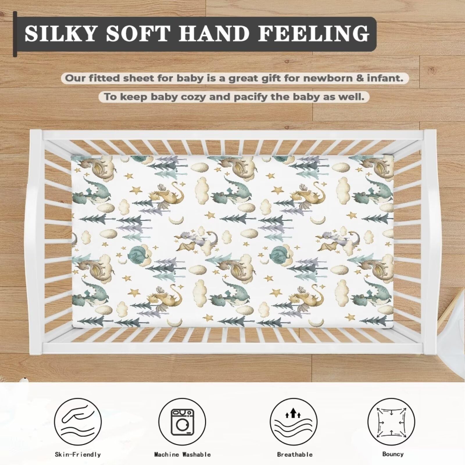 Cute Dragon Fairy Tale Fitted Crib Cloud Moon Star Dragons Egg Trees Standard...