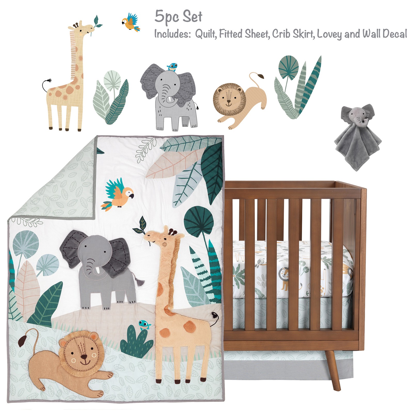 Lambs Ivy Jungle Friends 5-Piece Safari Animals Nursery Baby Crib Bedding Set