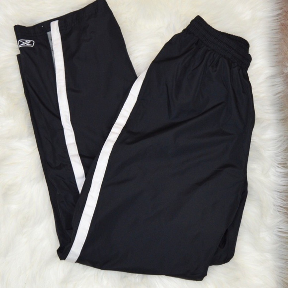 Reebok Women Classic Black White Stripe Track Basketball Pants Zip Ankle Medium