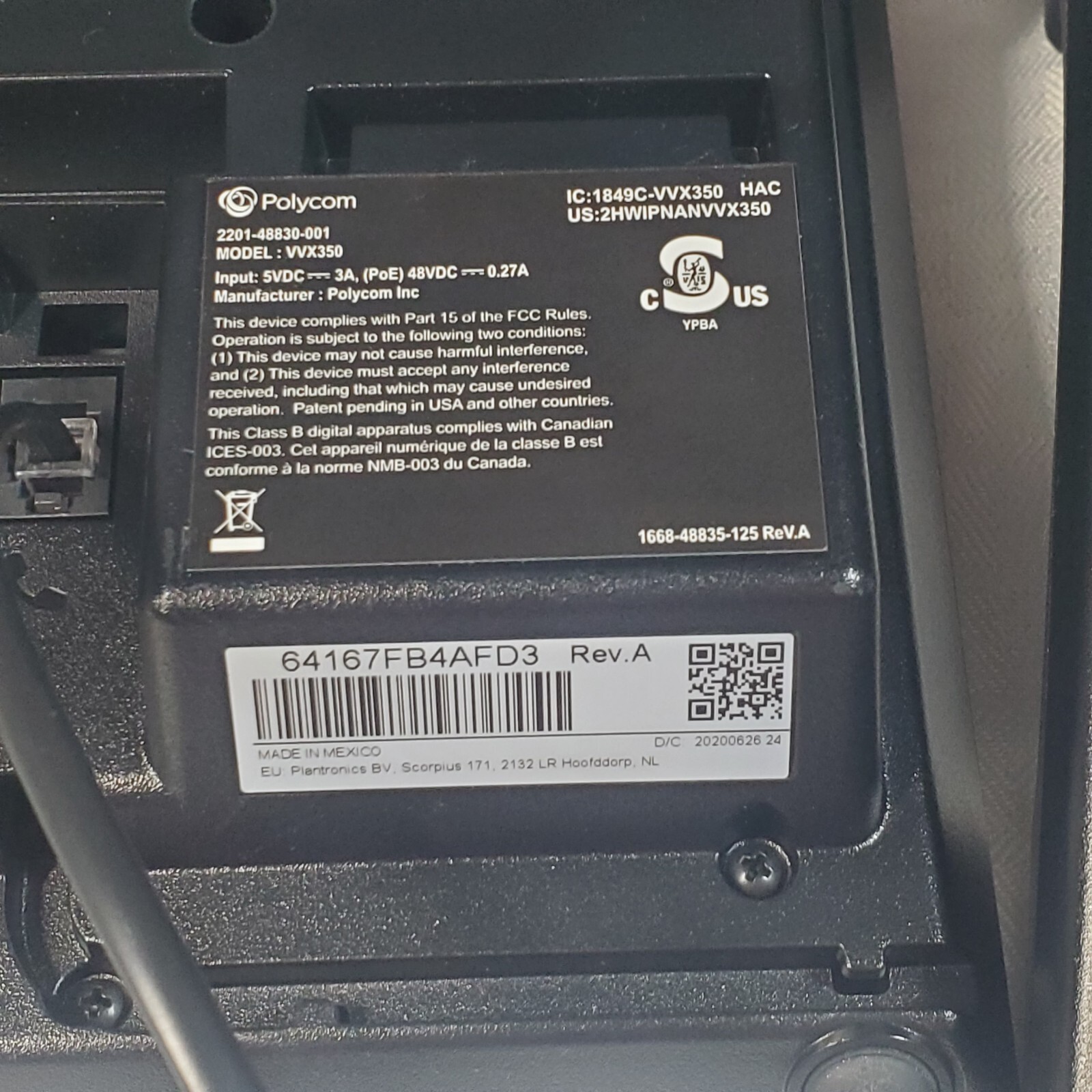 Polycom VVX 350 6 Line Desktop Business IP Phone AC Adapter, Stand. Used.