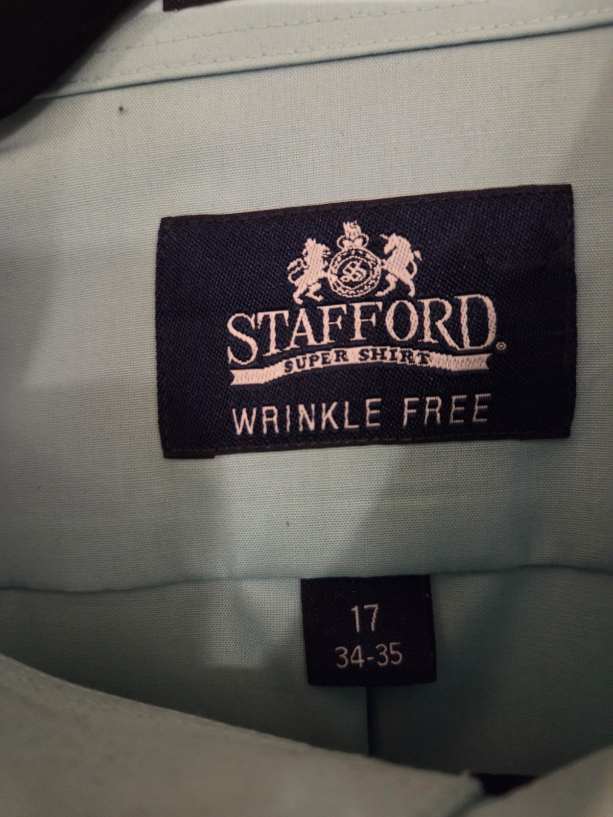как выглядит STAFFORD SUPER SHIRT WRINKLE FREE Blue Green DRESS SHIRT 17 34-35 фото