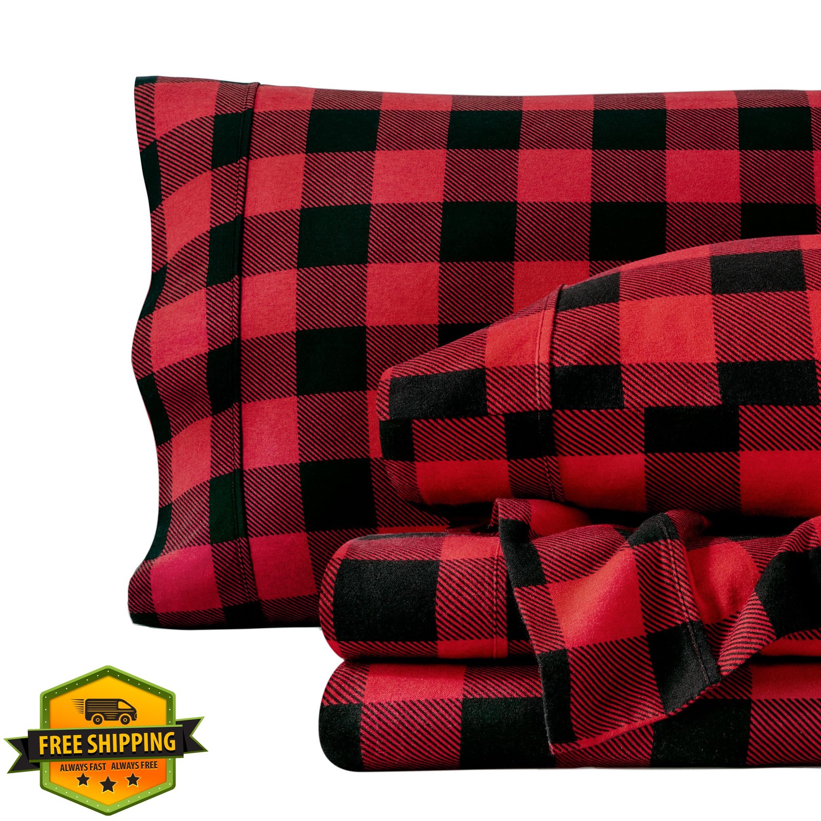 Bare Home King Flannel Sheet Set Buffalo Plaid Red/Black Cotton Deep Pocket