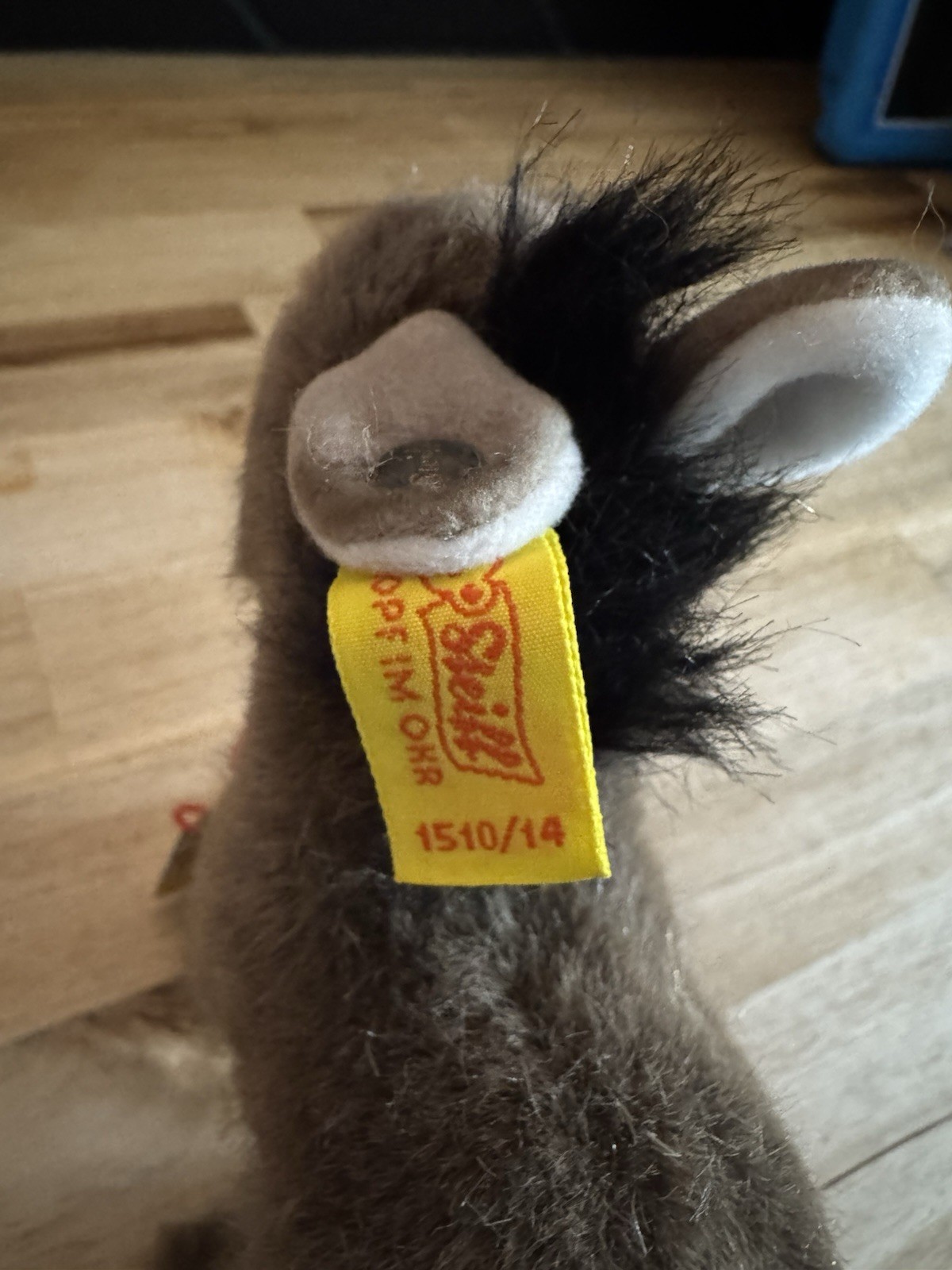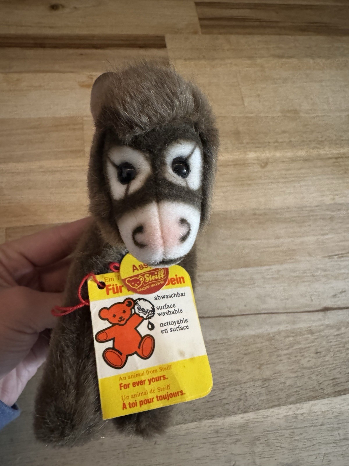 Vintage Steiff Donkey Assy 1510/14 Brown 5 Western Germany w/all tags pin.