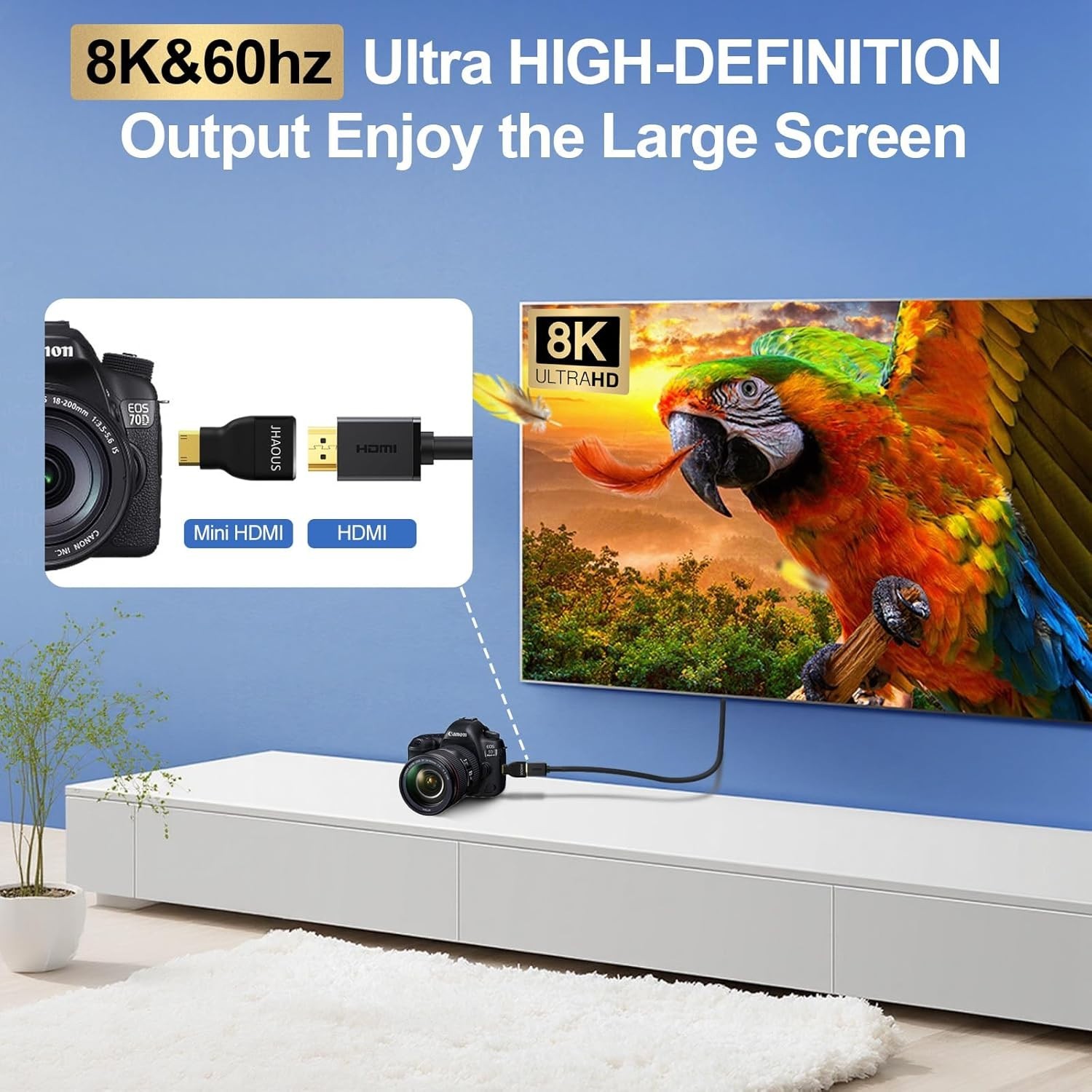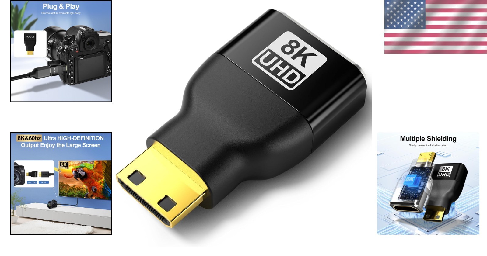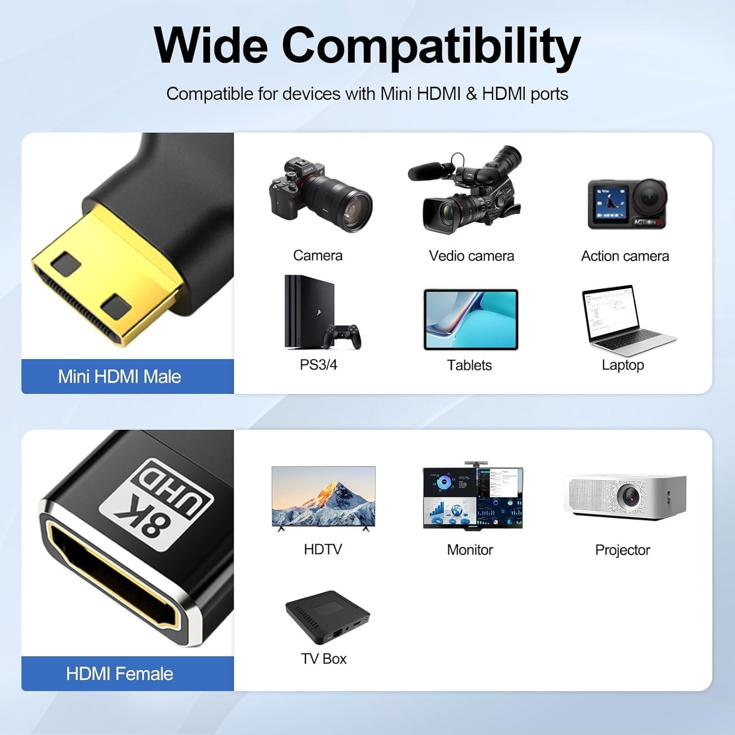 Gold-Plated Mini HDMI to HDMI Adapter - Supports 4K 144Hz, Compact Lightweight