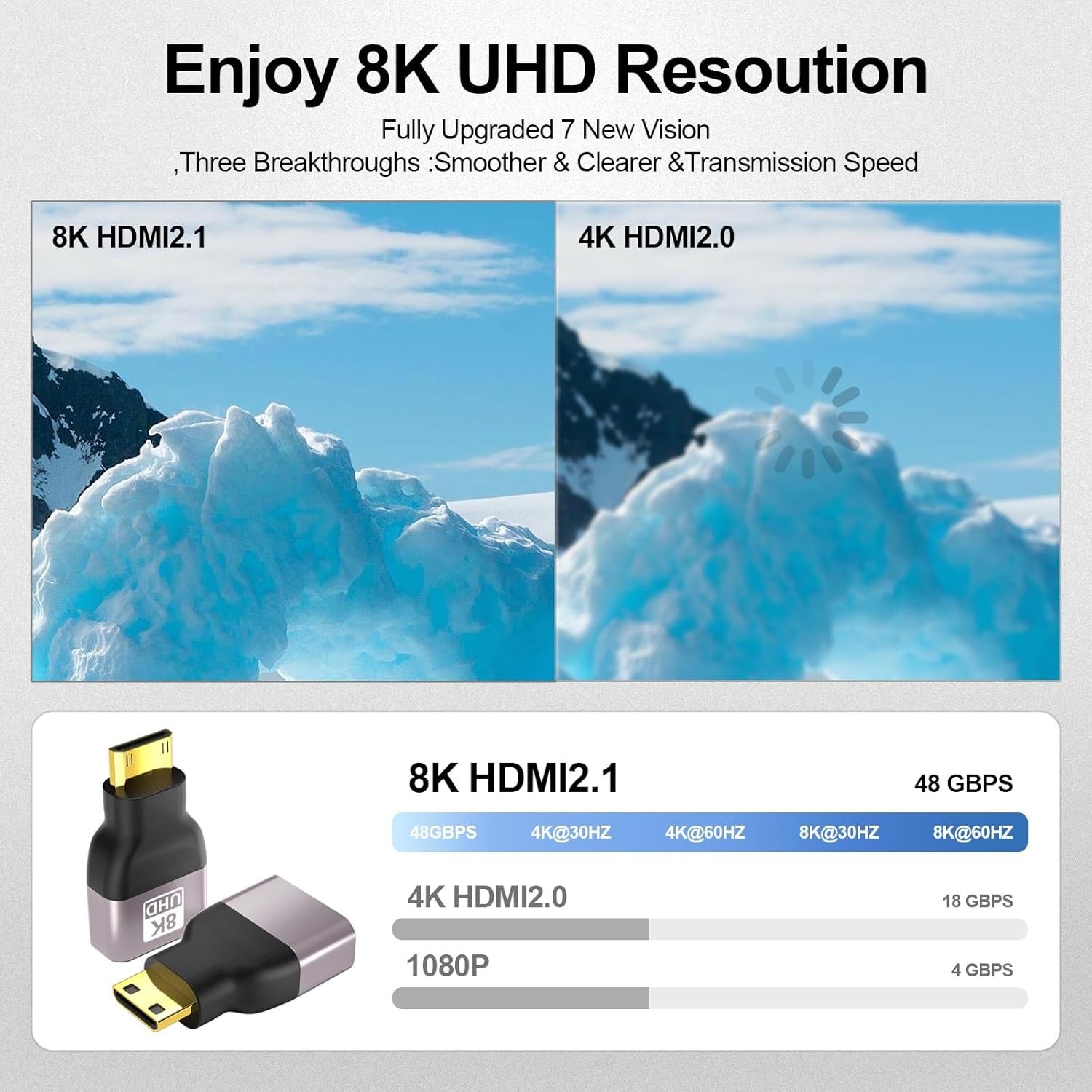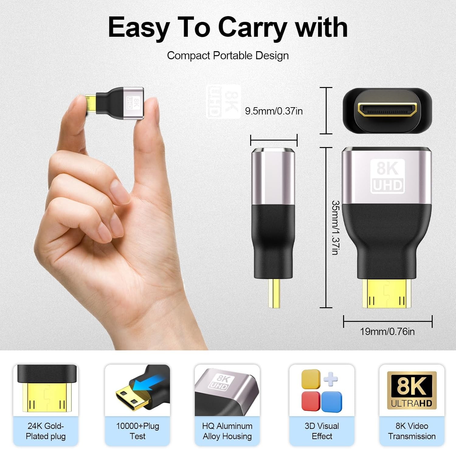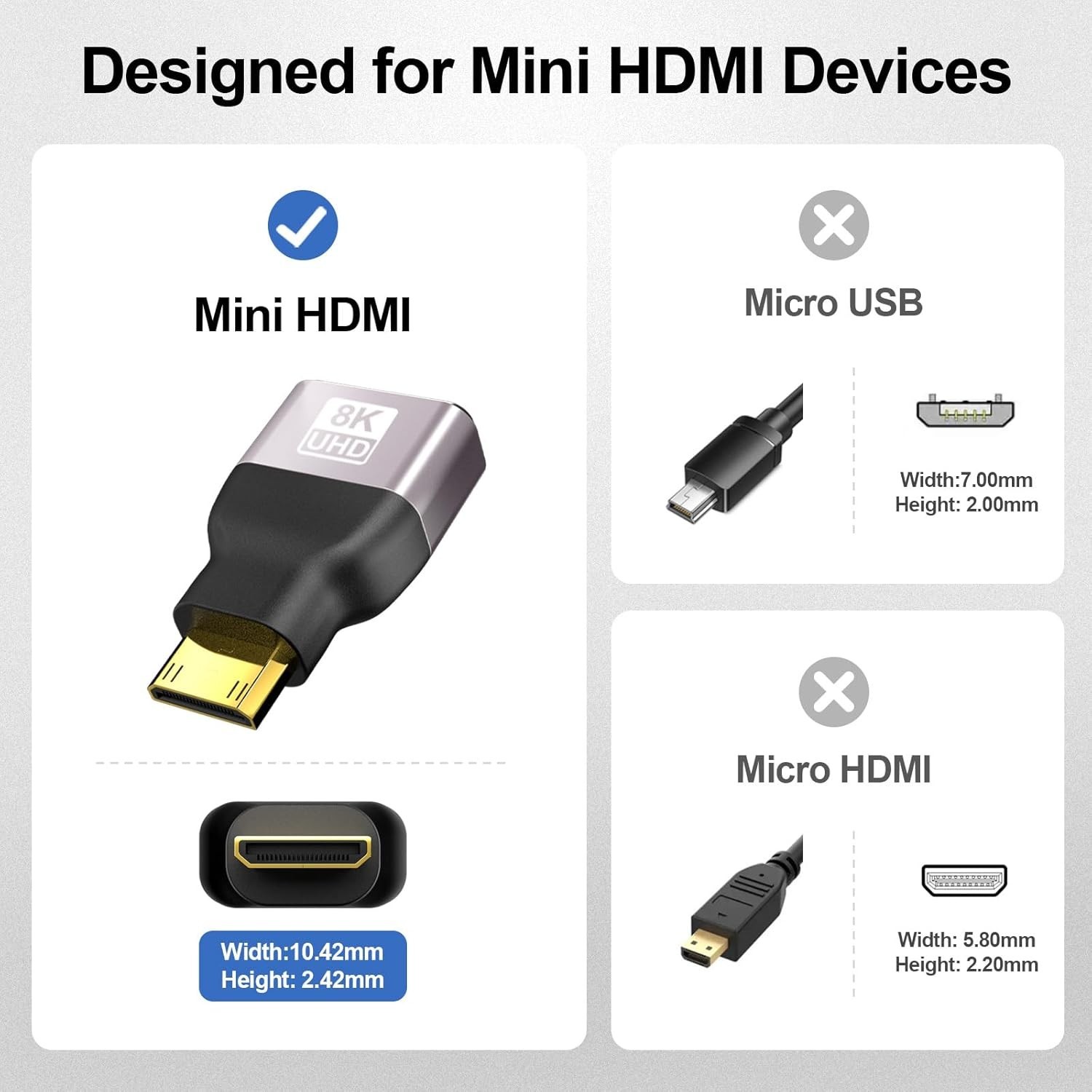 Gold-Plated Mini HDMI to HDMI Adapter 2-Pack 8K 60Hz High-Speed Performance