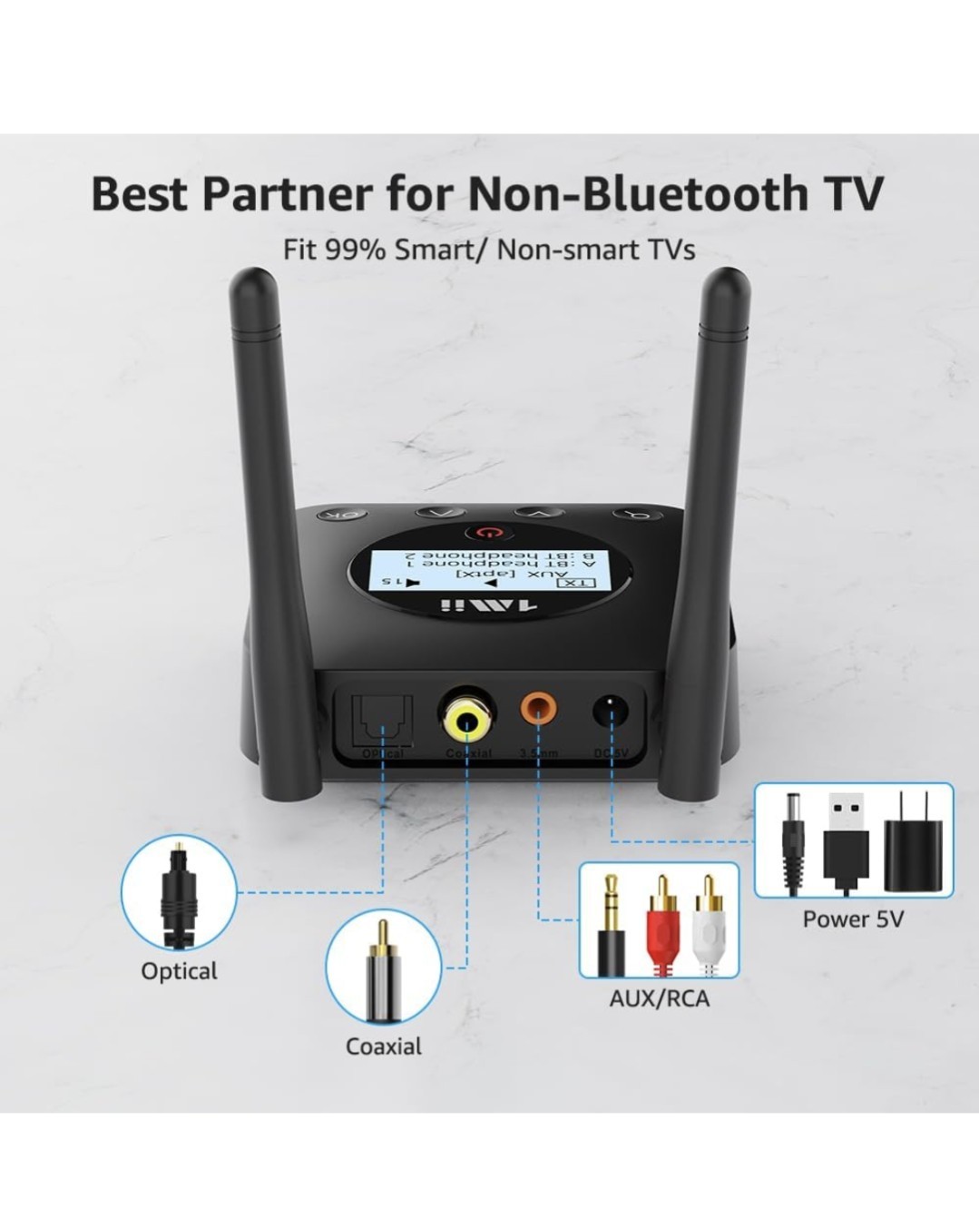 1Mii B06TX Long Range Bluetooth 5.3 Transmitter for TV/PC/Projector to 2...