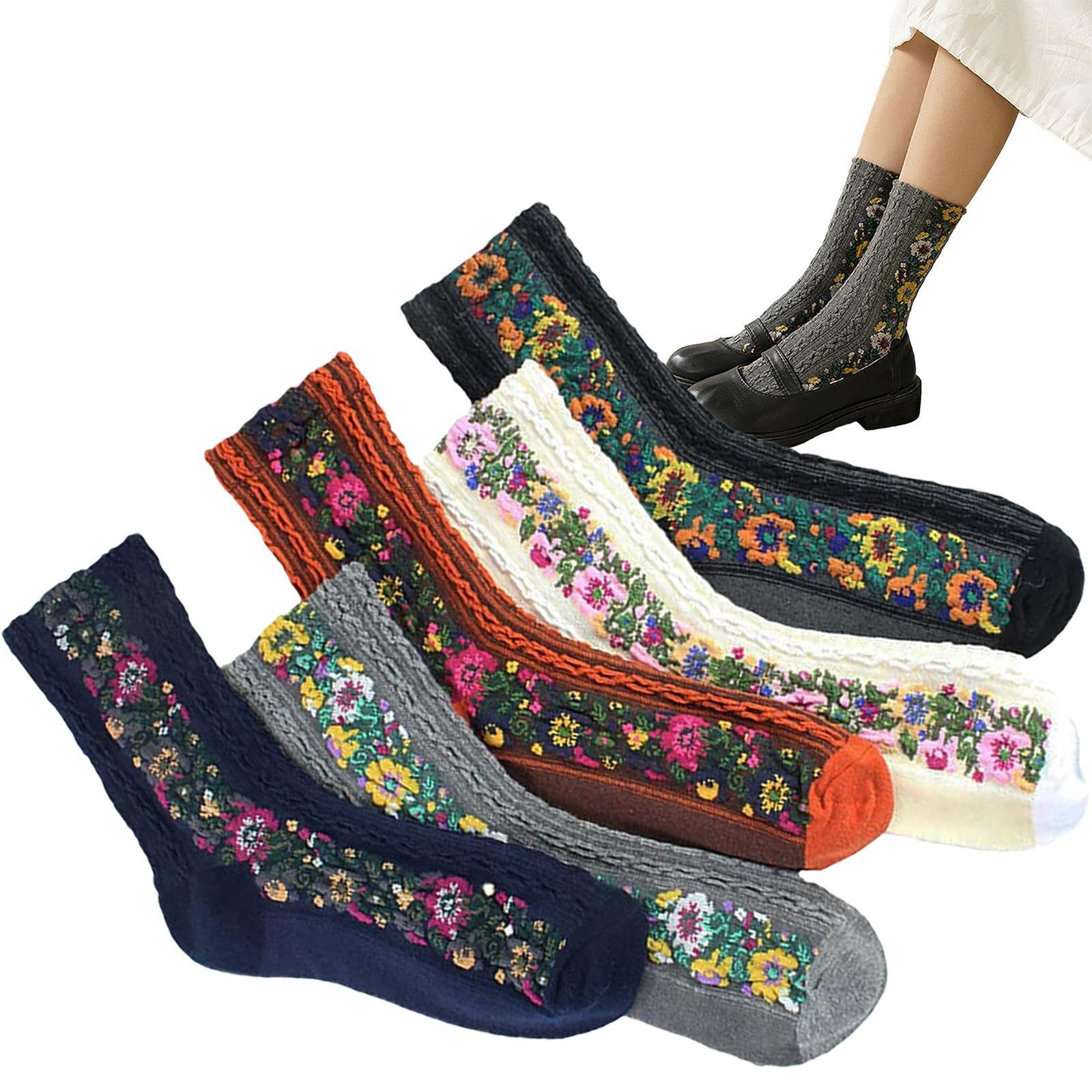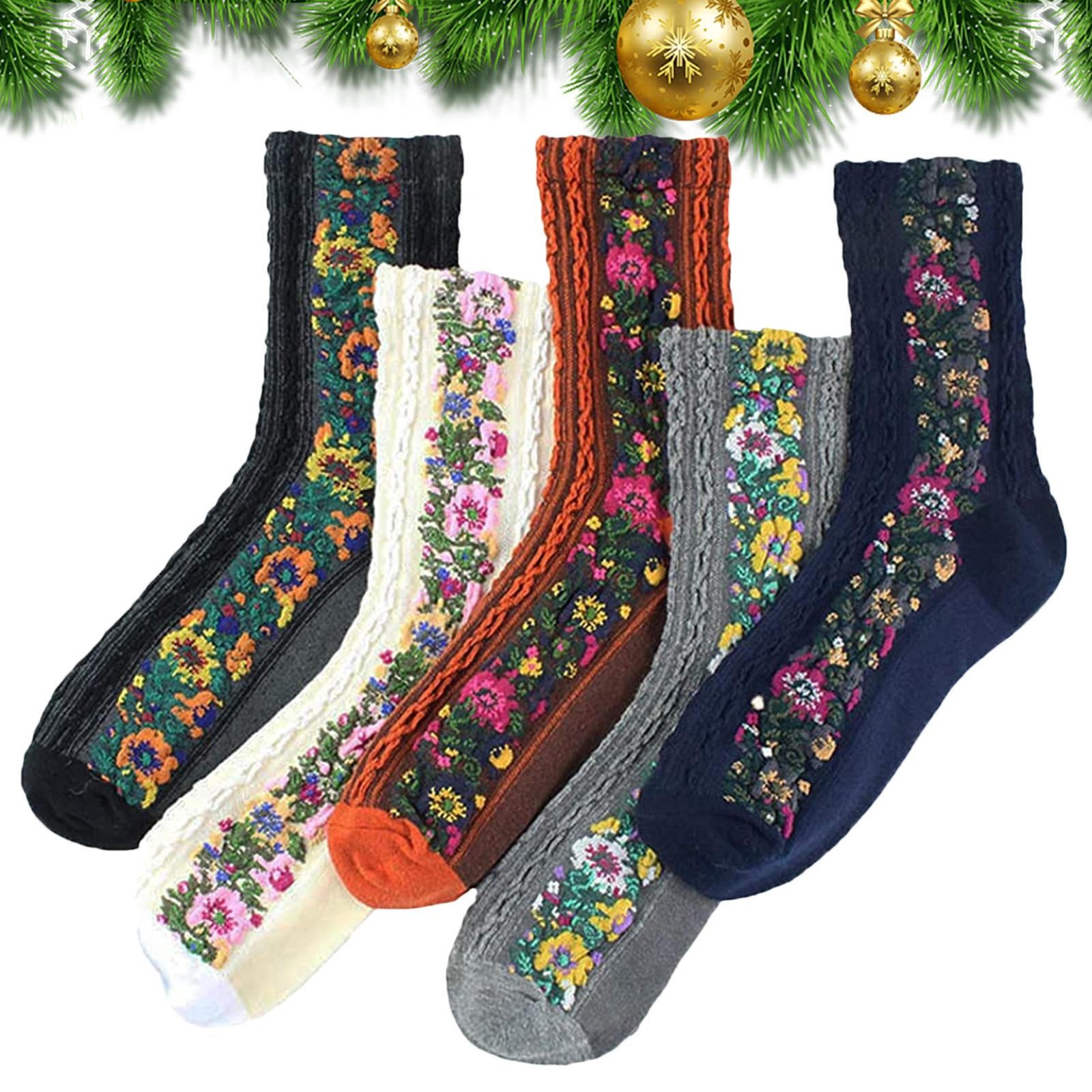 5 Pairs Embroidered Floral Vintage Winter Cute Cotton Socks For Women Ladies