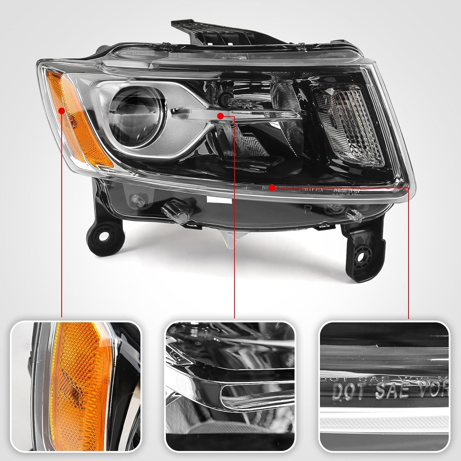 • Halogen Headlight Assembly Compatible with Jeep Grand Cherokee 2014 2015 2016 Re