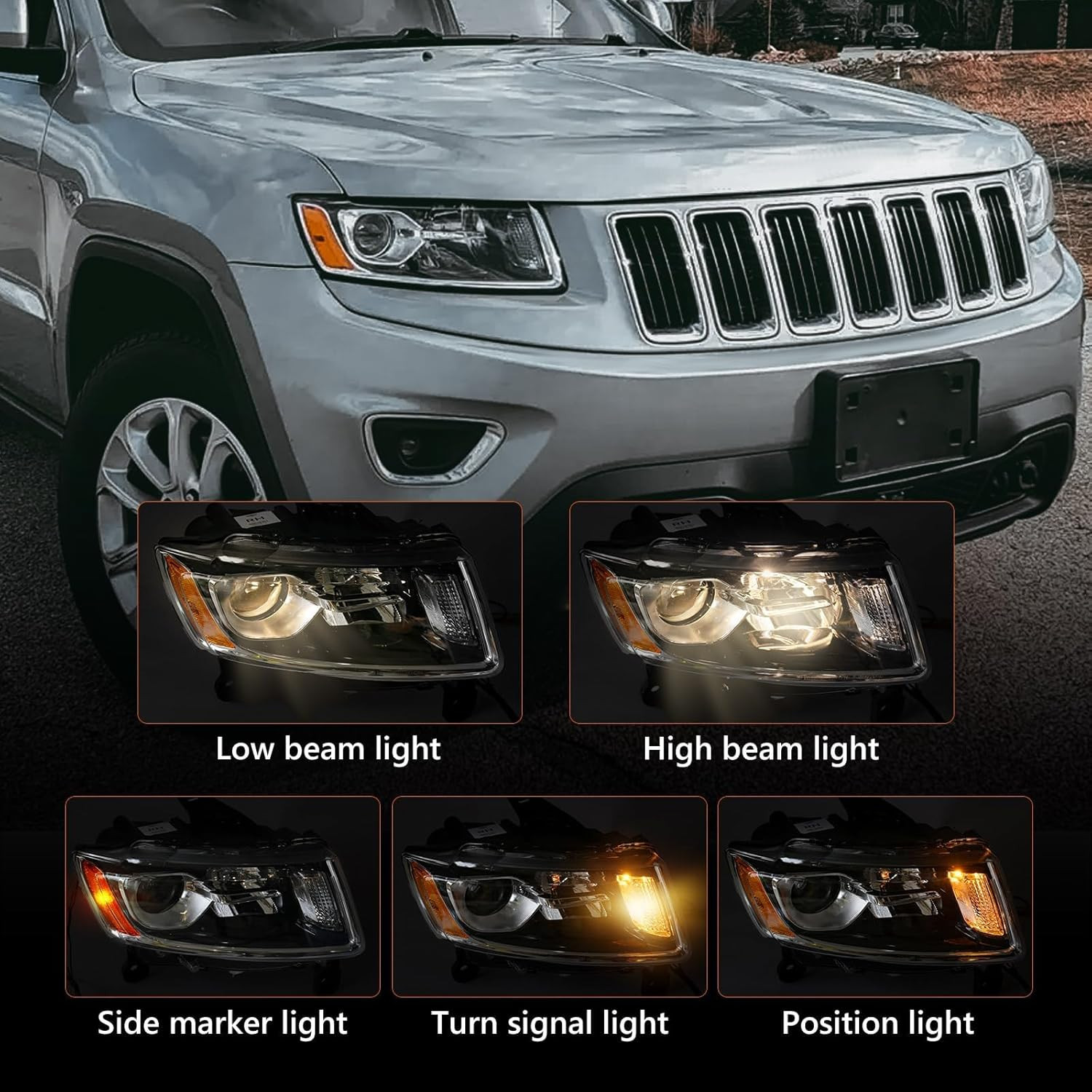 как выглядит Halogen Headlight Assembly Compatible with Jeep Grand Cherokee 2014 2015 2016 Re фото