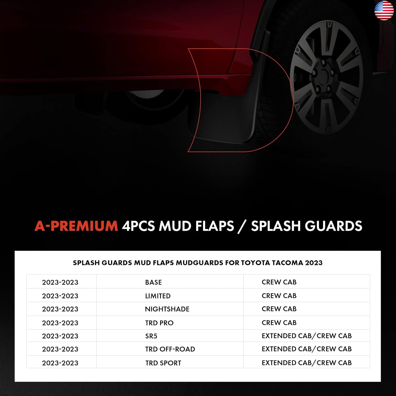 A-Premium 4PCS Mud Flaps Compatible with Toyota Tacoma 2016-2023 with Fender