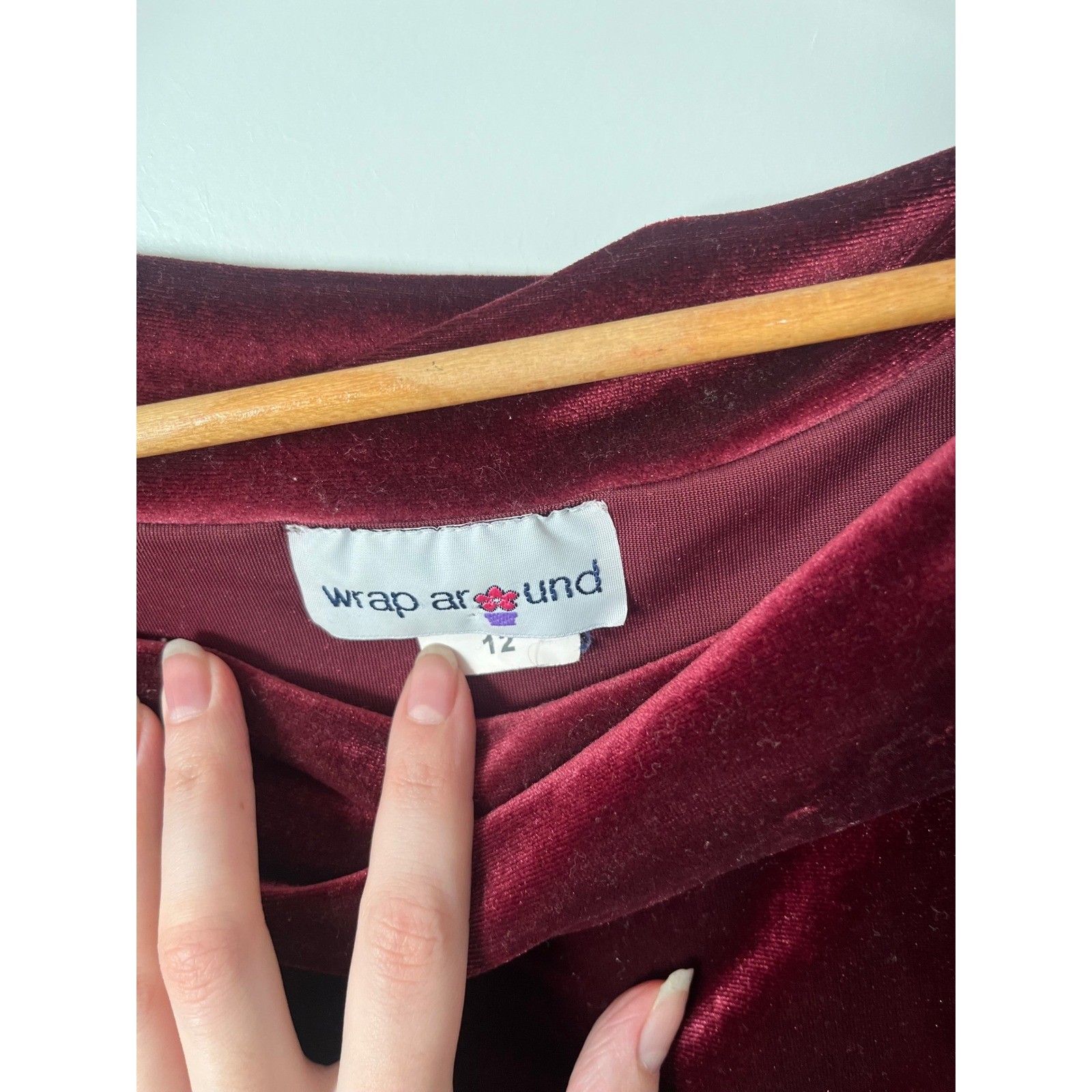 Wrap Around Girls Burgundy Velvet Pink Floral Tiered Glitter Party Dress Size 12