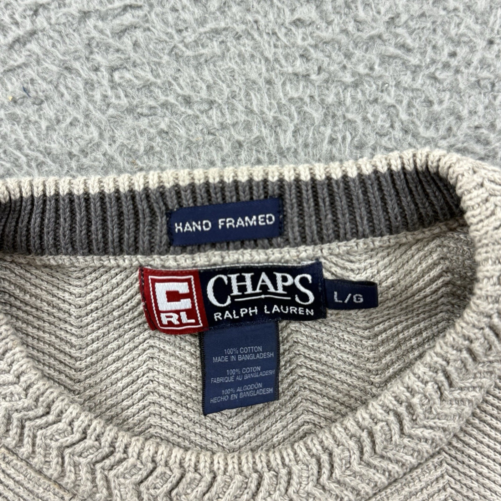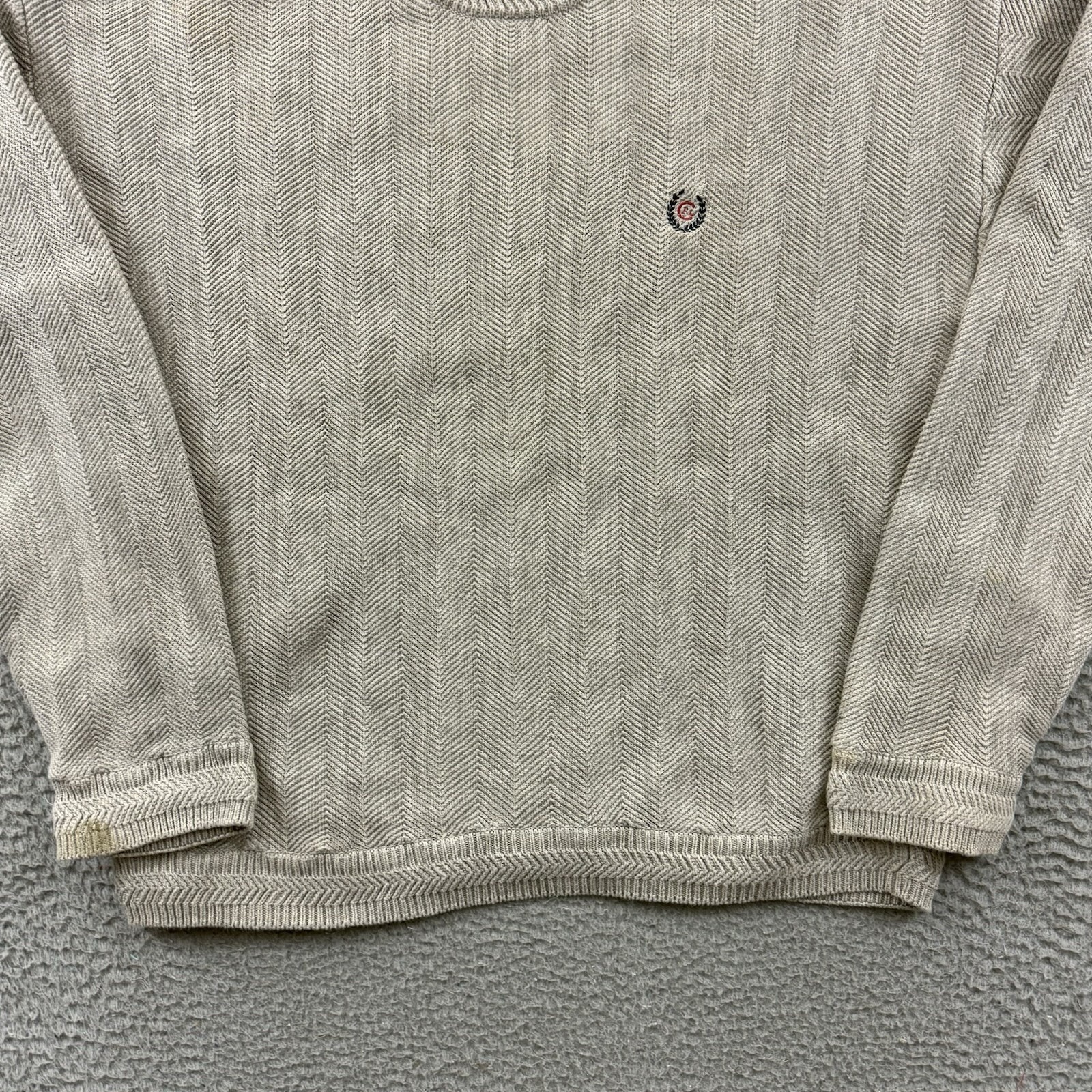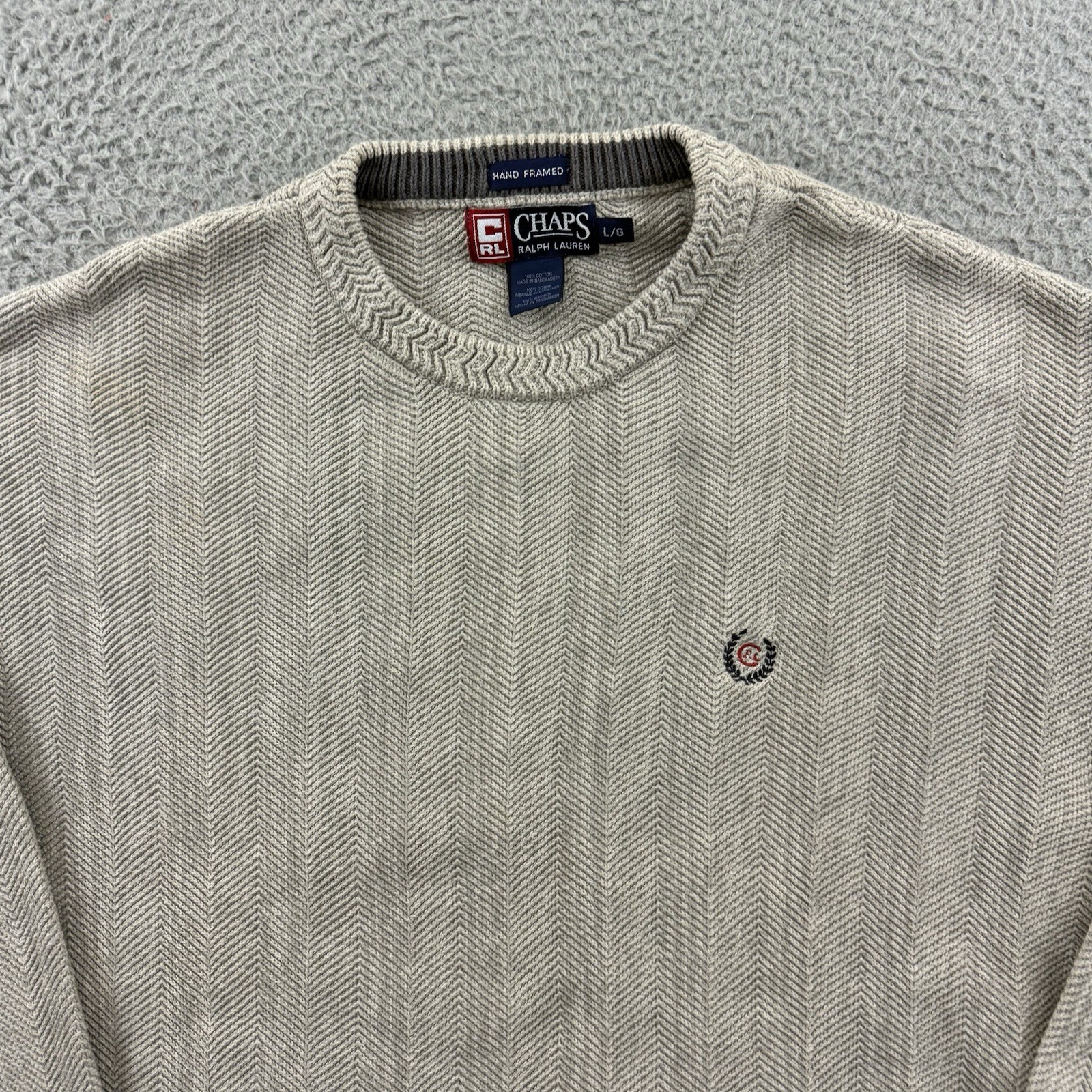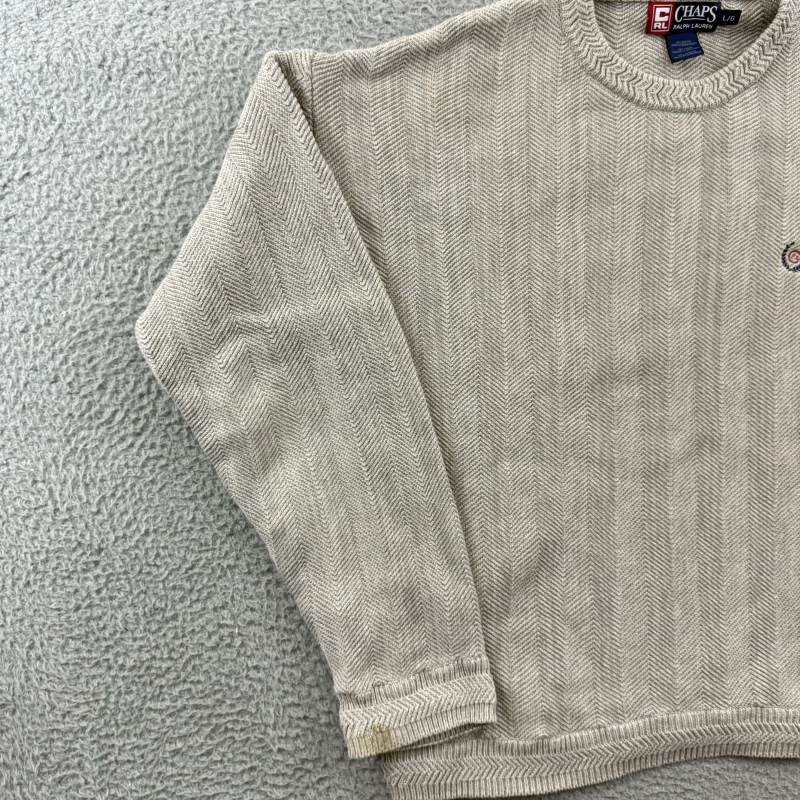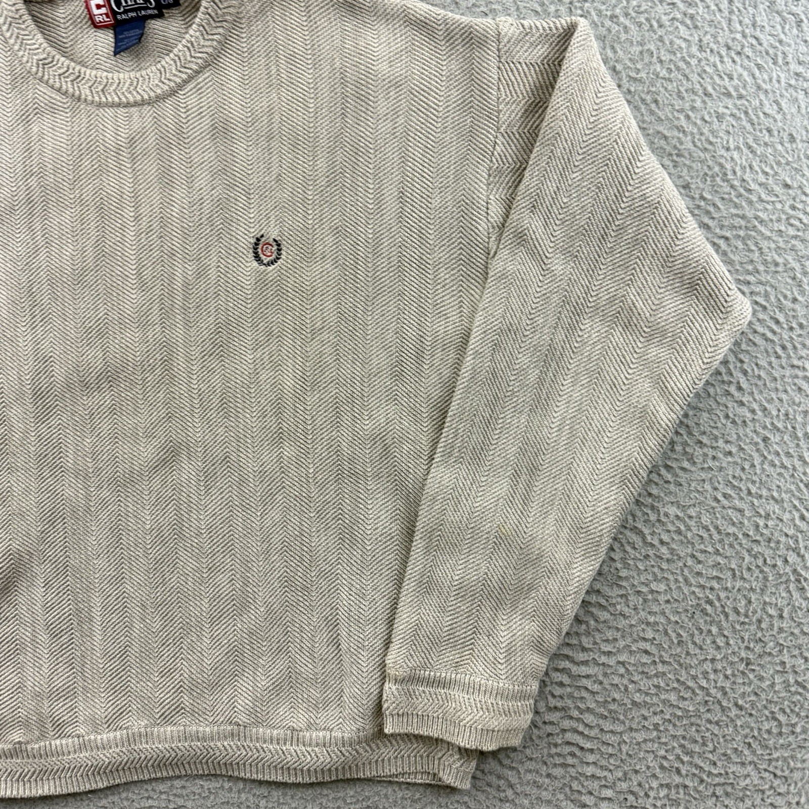 Vintage Chaps Ralph Lauren Sweater Mens Large Biege Herringbone Chunky Knit