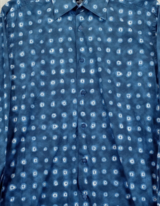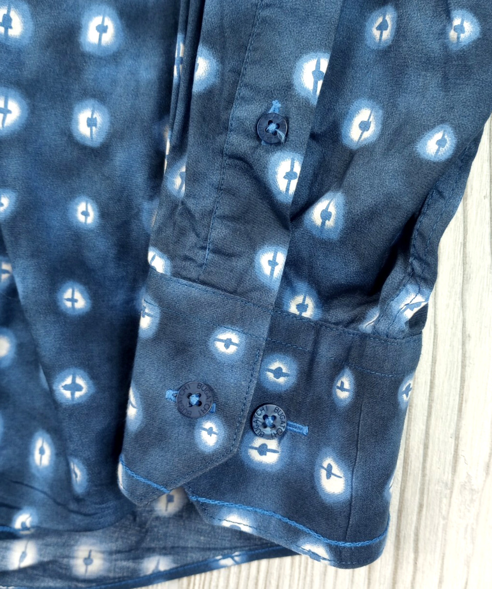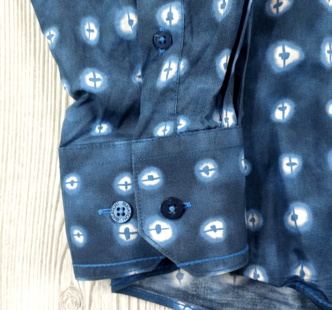 как выглядит Bugatchi UOMO Shirt Medium Blue Geometric Mens Long Sleeve Casual Button Dress фото