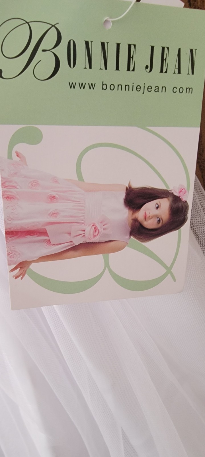 NWT Bonnie Jean Girls' White Dress Bow Lace Embroidery Communion Flower Girl