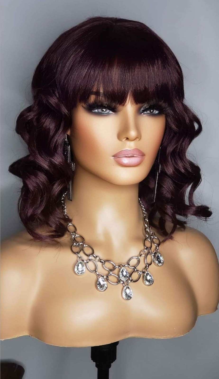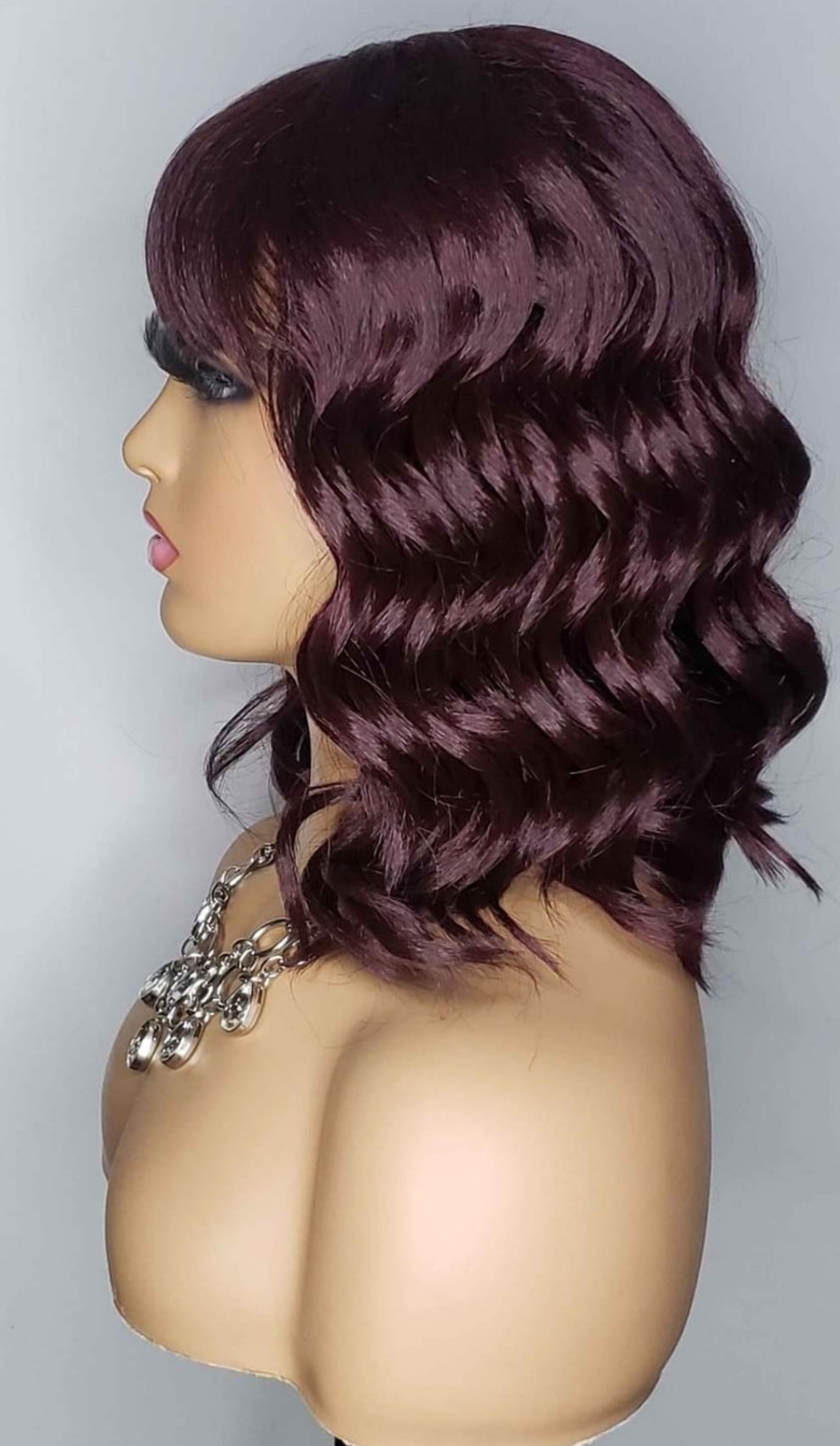 как выглядит New Short Wavy Bob Bangs Style 99j Curly Full Cap Wig Womens Fashion Hair Wigs фото