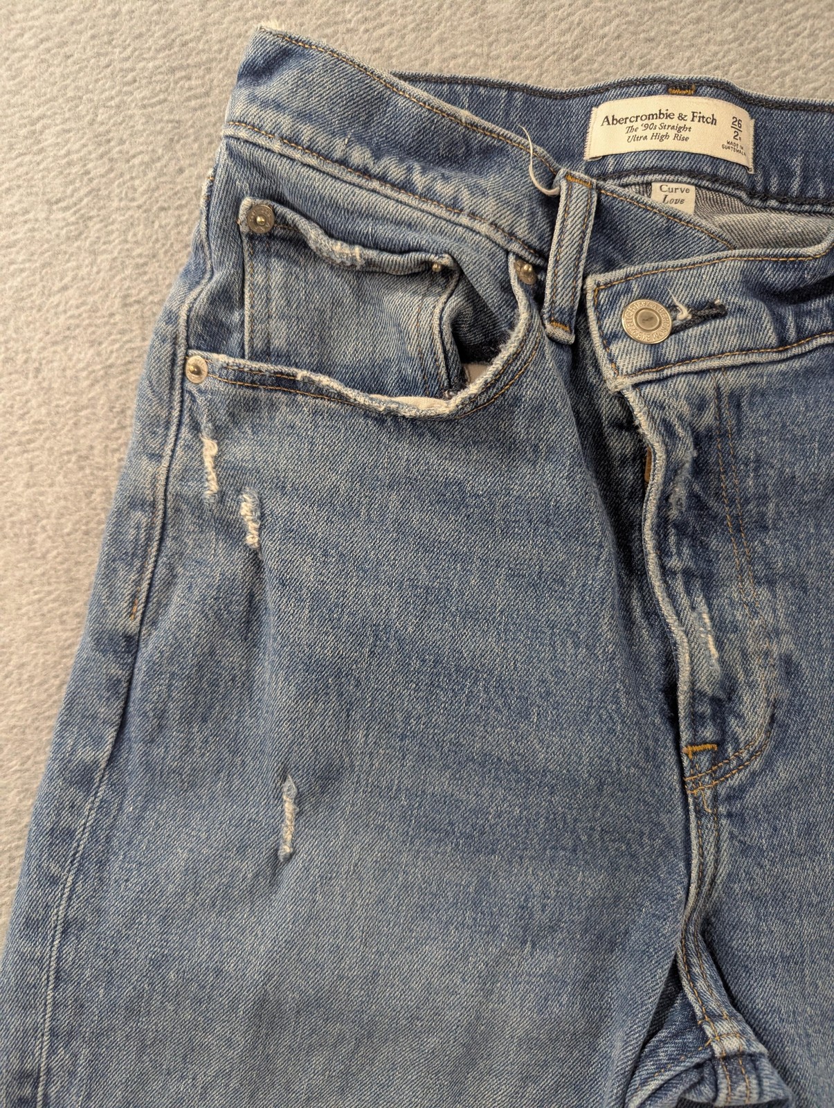 как выглядит Abercrombie Fitch 90s Straight Jeans Womens 26 Light Wash High Rise Curve Love фото