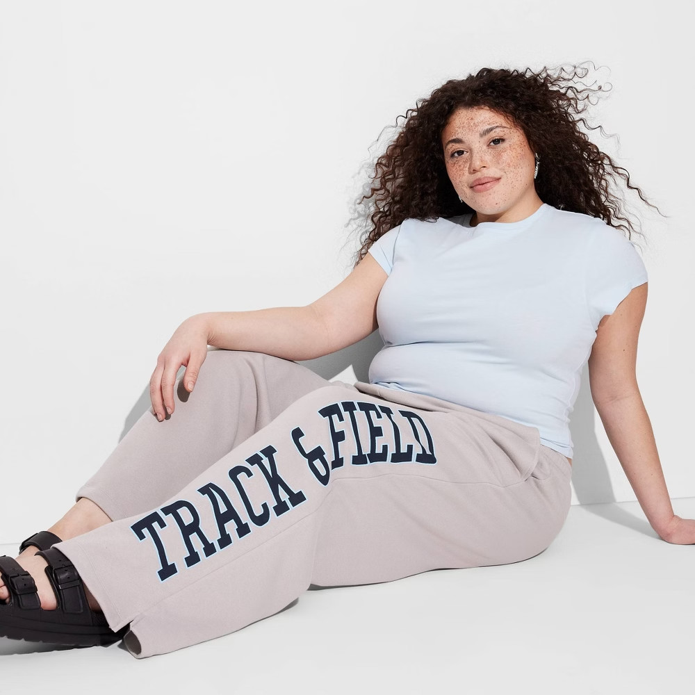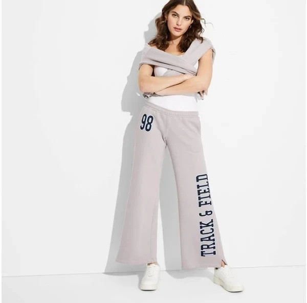 Wild Fable Women's Low-Rise '98 Track Field Wide Leg Sweatpants Gray Small