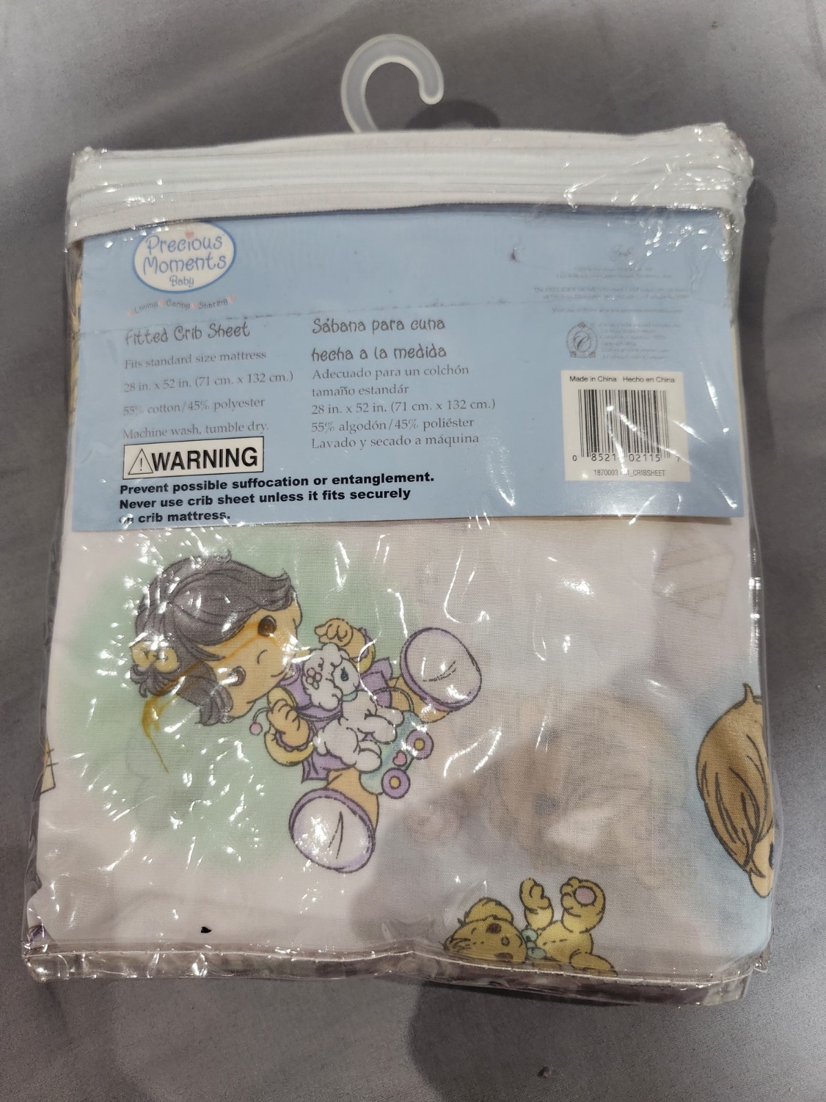 NEW Vintage Precious Moments Babies Buttons Bows Fitted Crib Sheet Crown