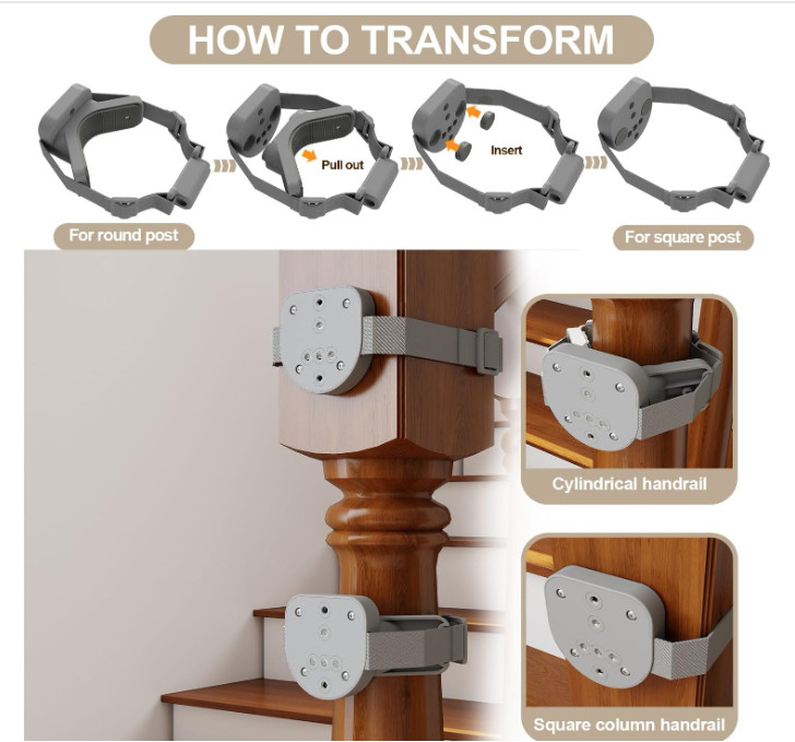 2-Pack No Hole No Drill Stairway Baby Gate Mounting Kit for Round Square Posts
