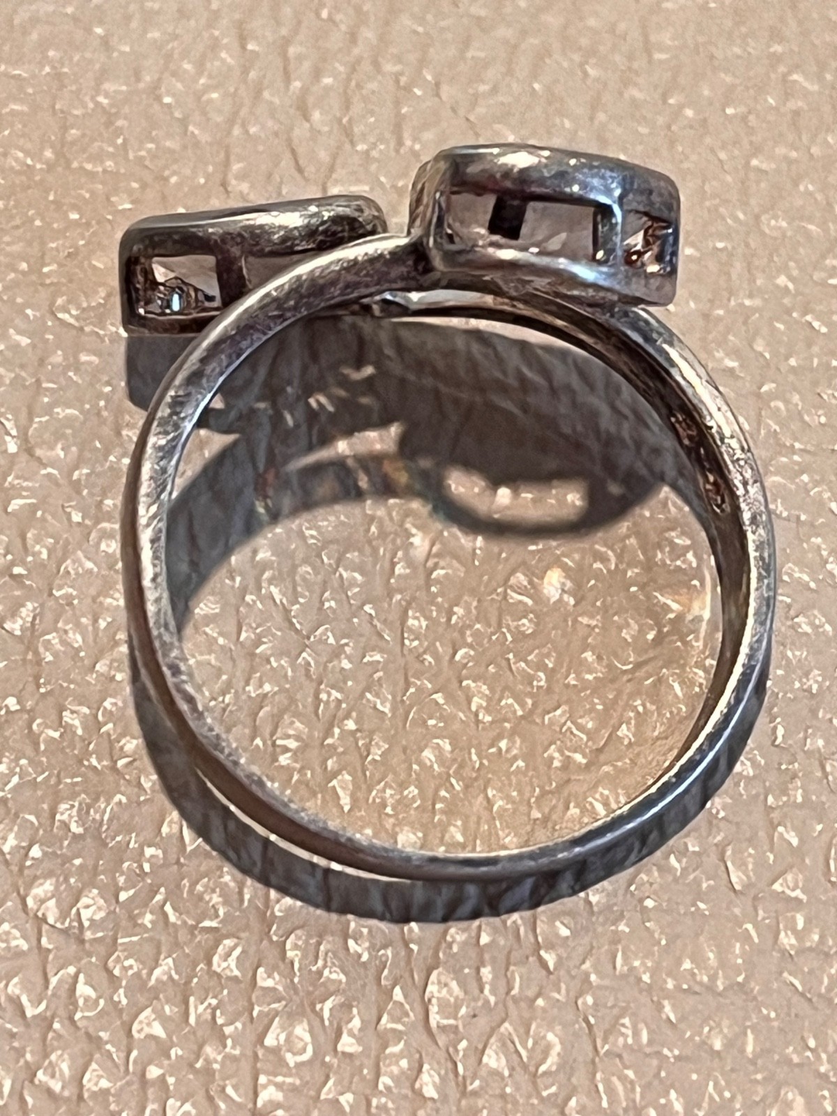 Vintage Sterling Silver Double Heart CZ Cubic Zirconia Ring - size 6