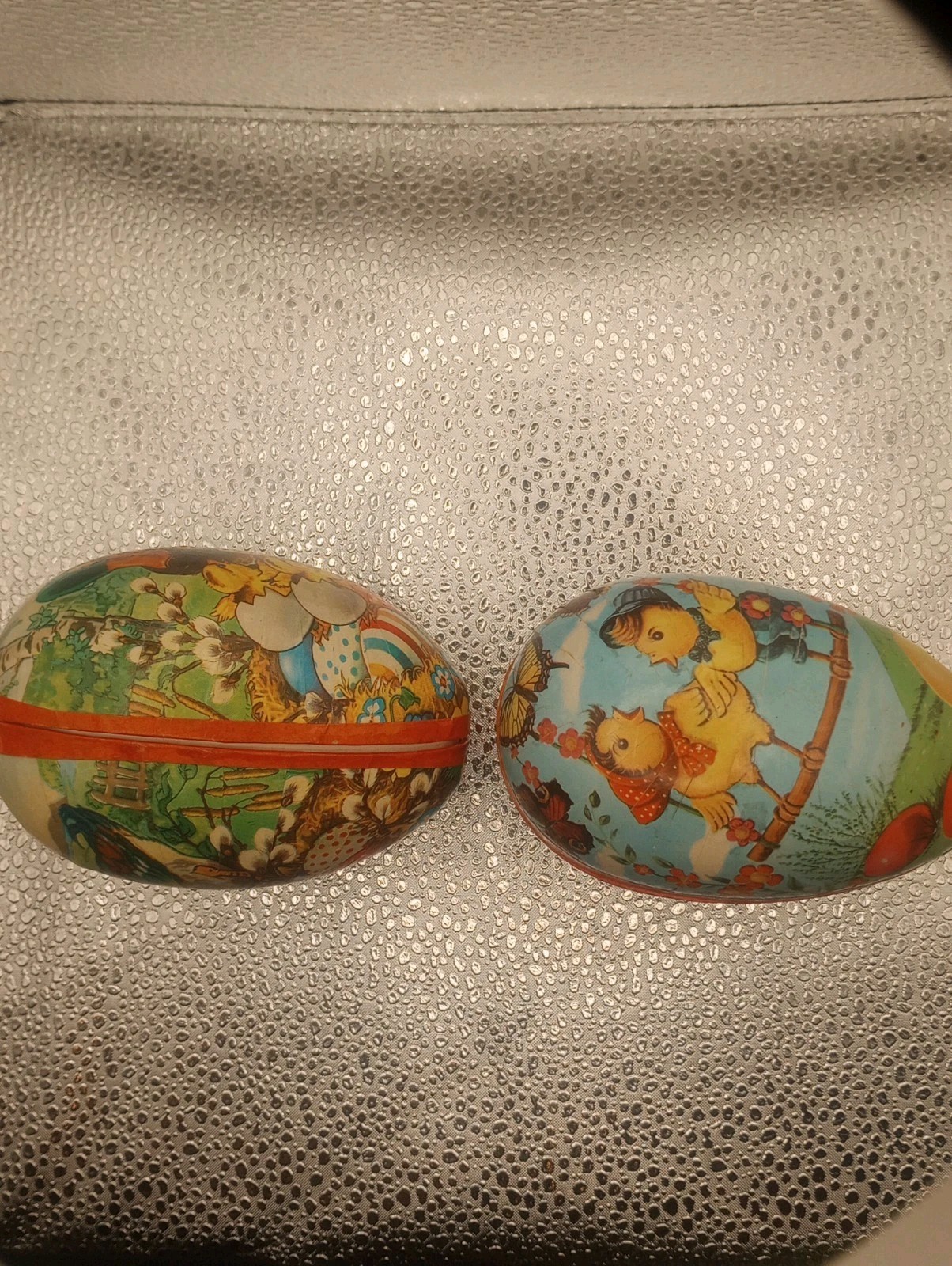 Lot Of 2 Vintage West Germany Paper Mache Easter Egg Candy Containers Beautiful