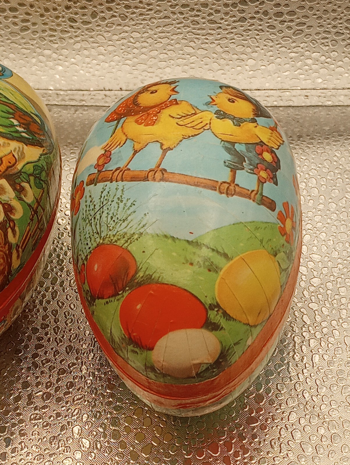 • Lot Of 2 Vintage West Germany Paper Mache Easter Egg Candy Containers Beautiful