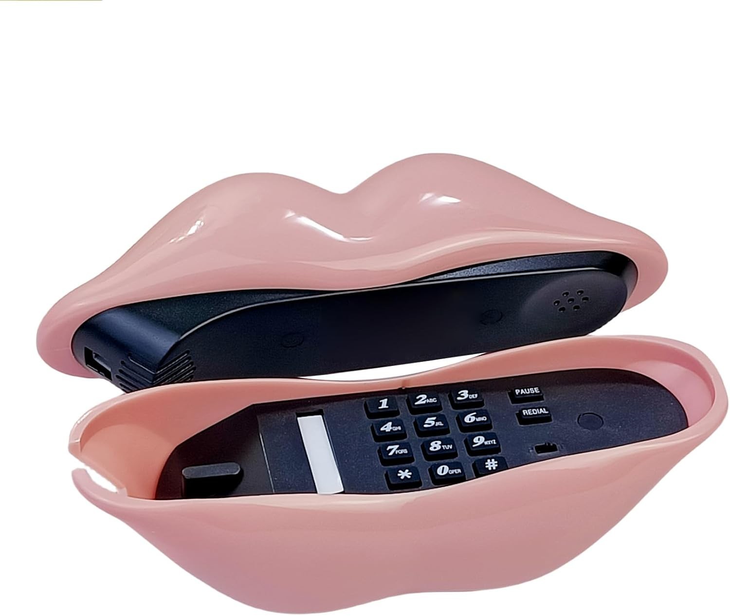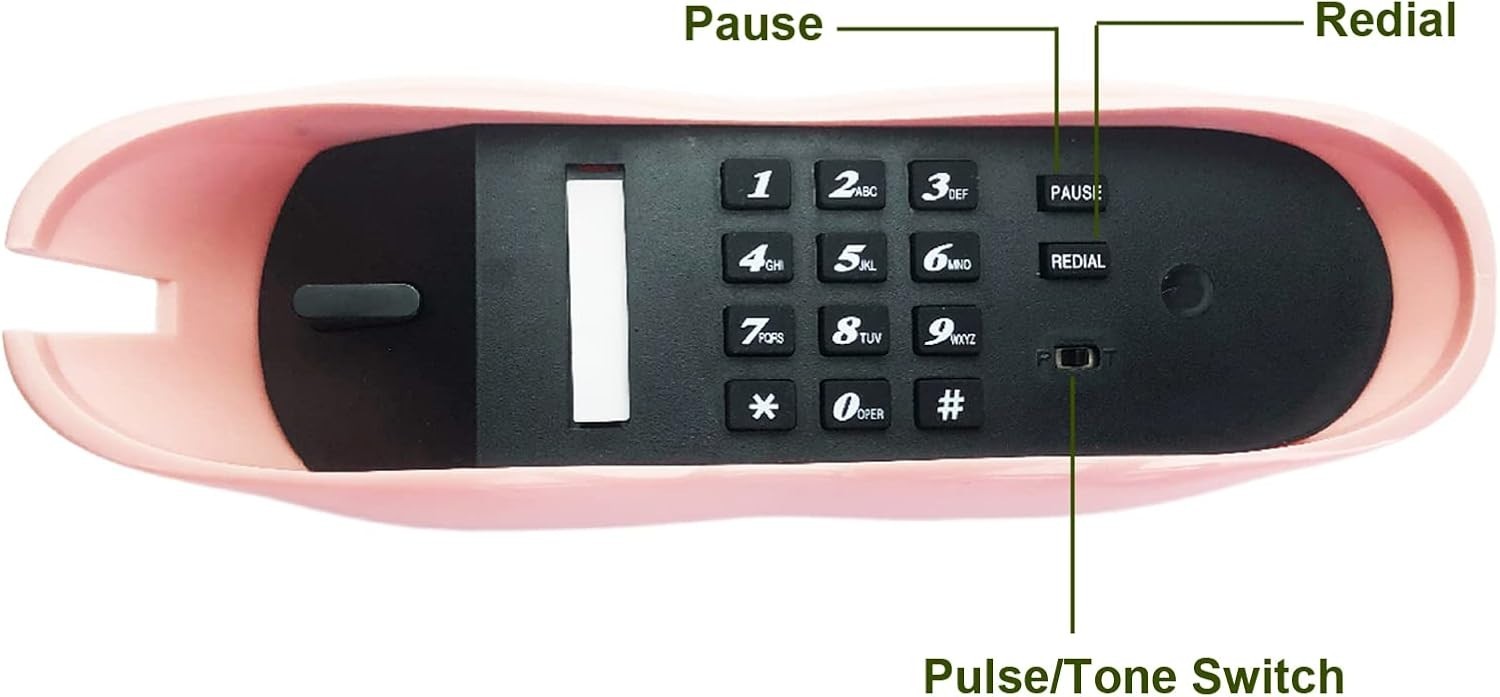 Особенности: Speakerphone, Real Landline Telephone, Single line corded, Pulse/Tone selectable, Vivid lip shape, Furniture decor, Cute funny phone for children, Novelty gift, Making calls, Answer calls, Pulse/Tone switch