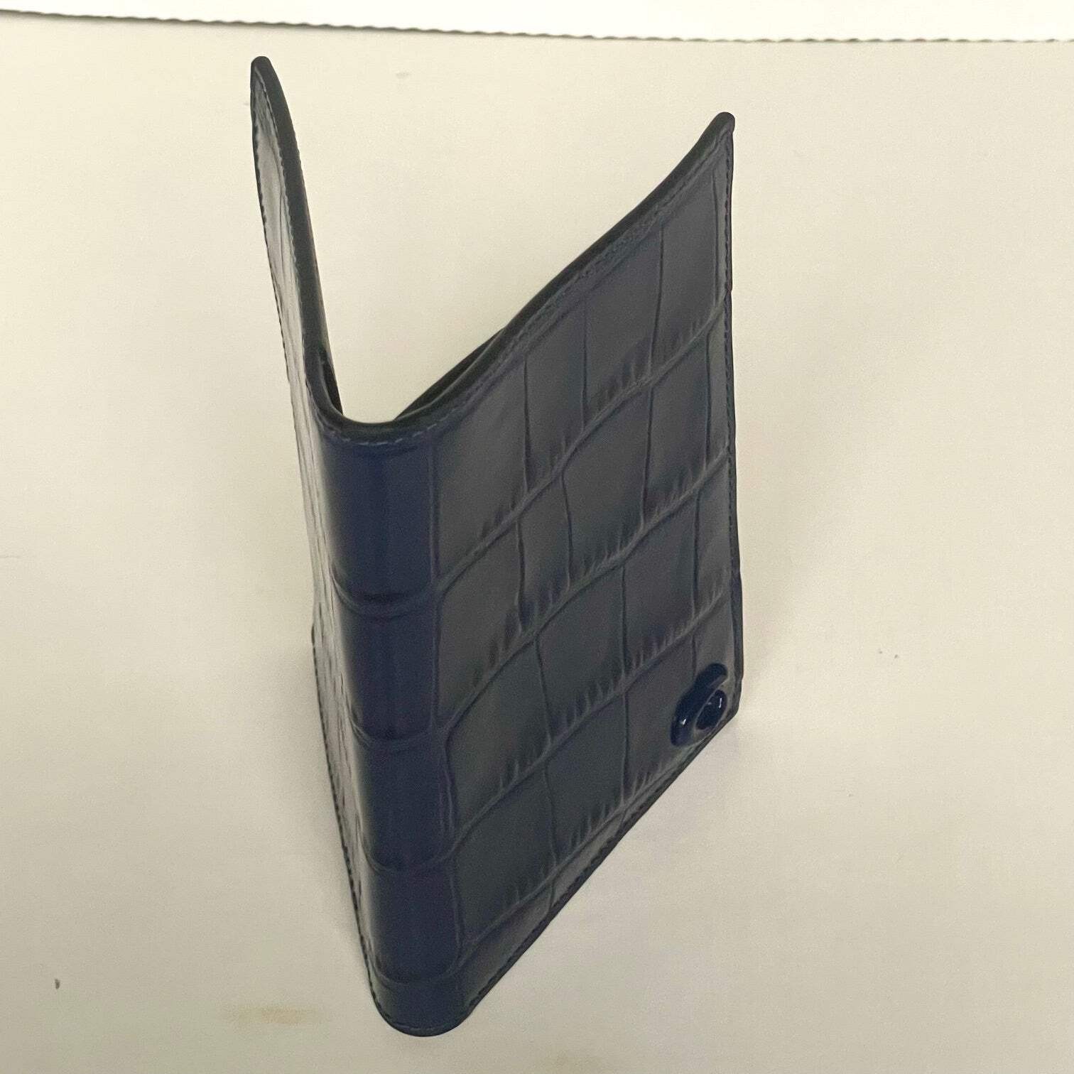 Тема: slim passport wallet, croc embossed leather, Dark navy blue wallet, travel card case, minimalist organizer, unisex leather wallet, pocket-friendly travel accessory