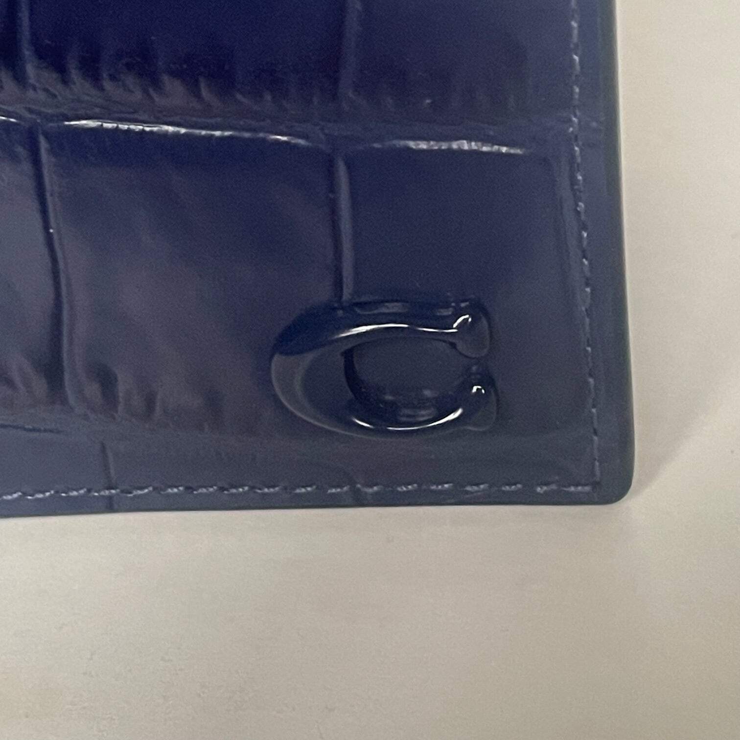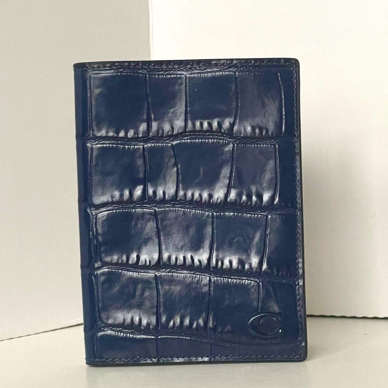 как выглядит Coach Passport Card Case CW445 Dark Navy Croc Embossed Leather Slim Blue фото