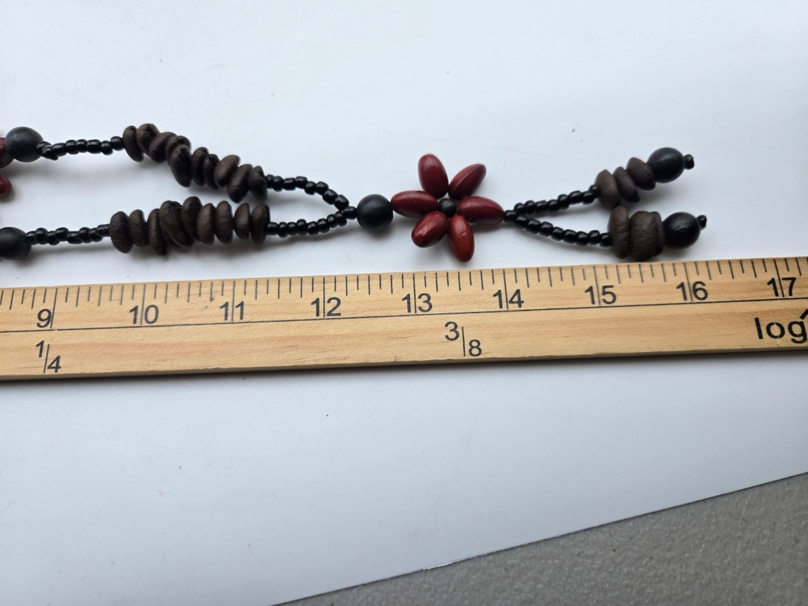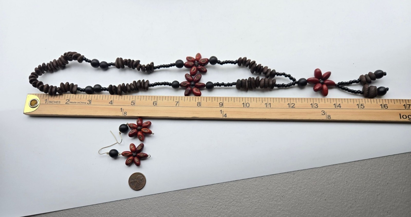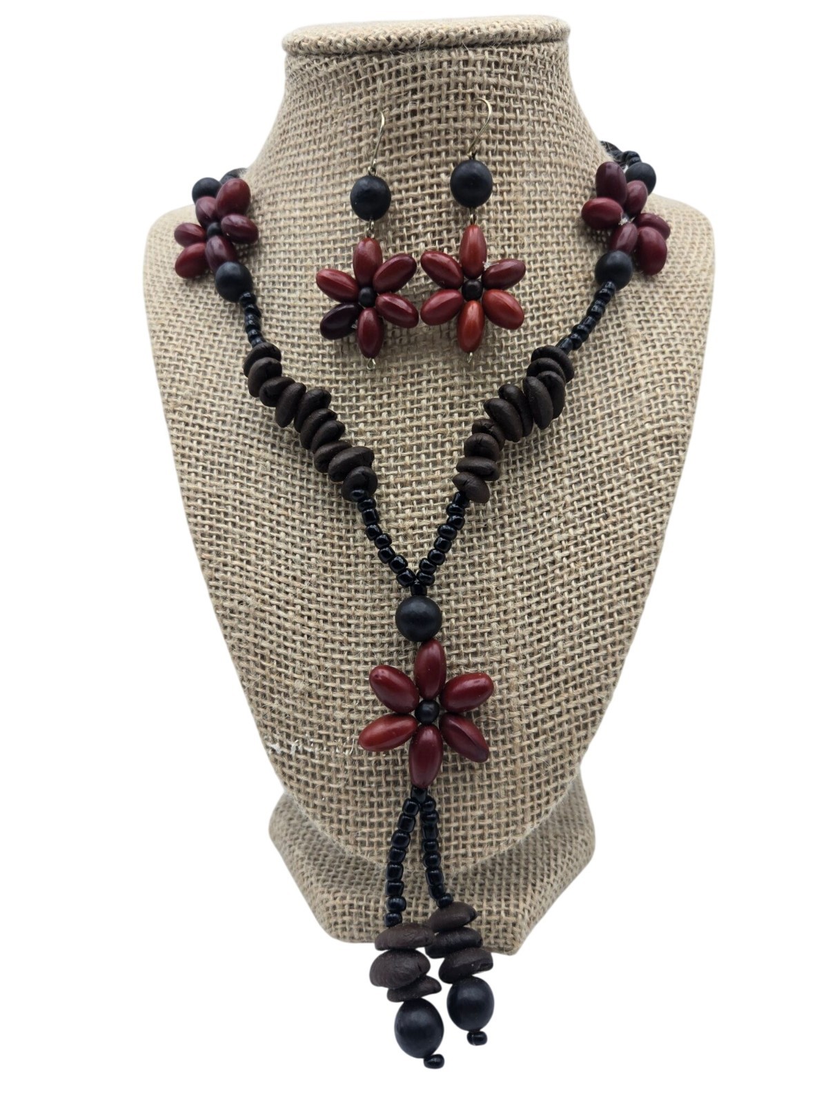 New Artisan Handmade Wooden Seeds Bead Flower Necklace Earrings Set
