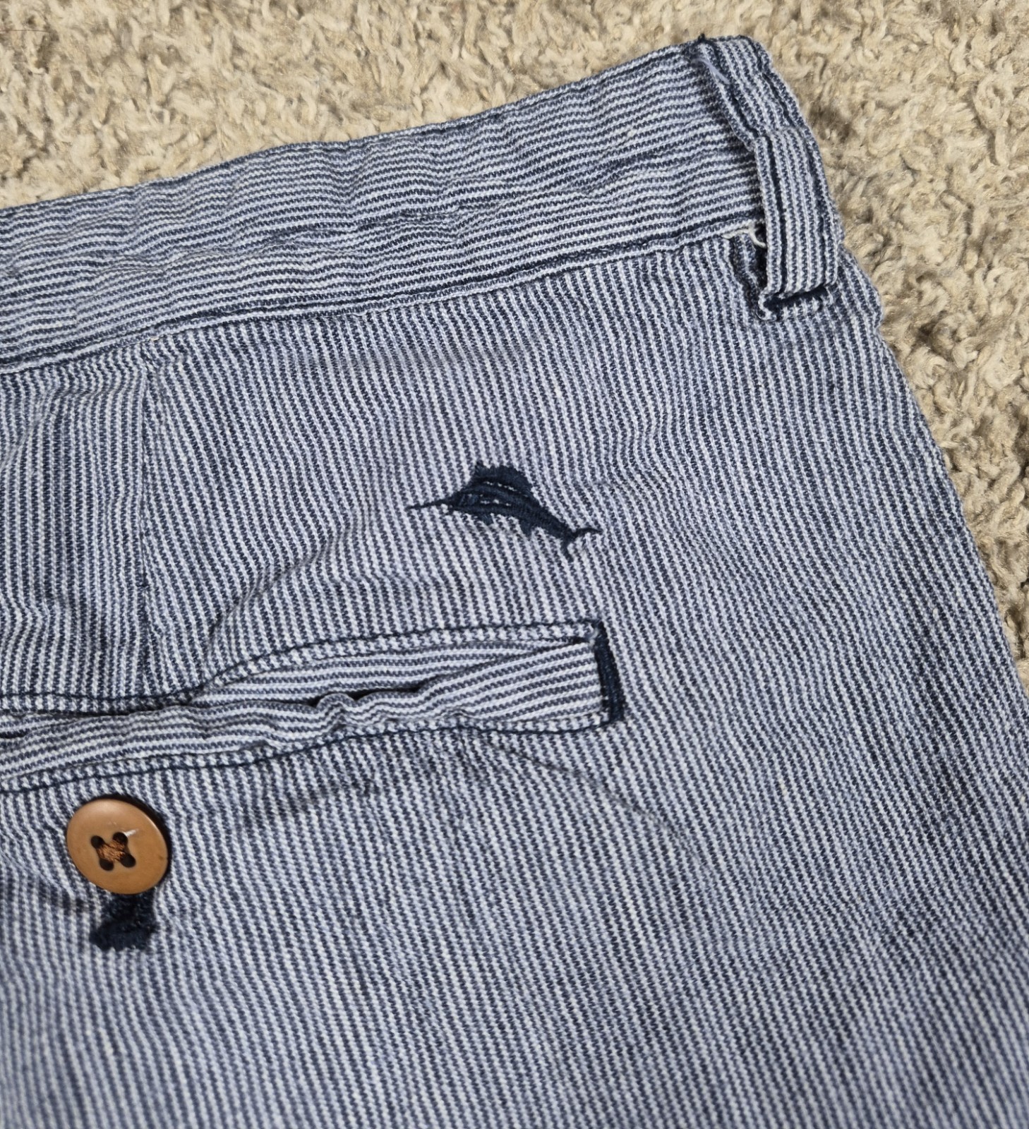 Tommy Bahama Mens Blue White Striped Linen Blend Shorts Size 38 Marlin 10