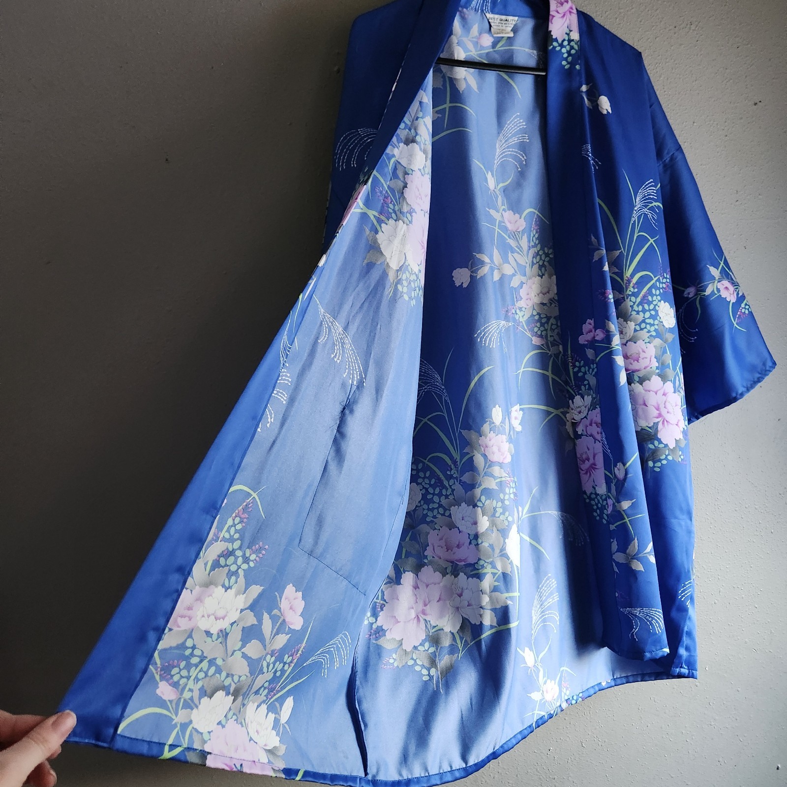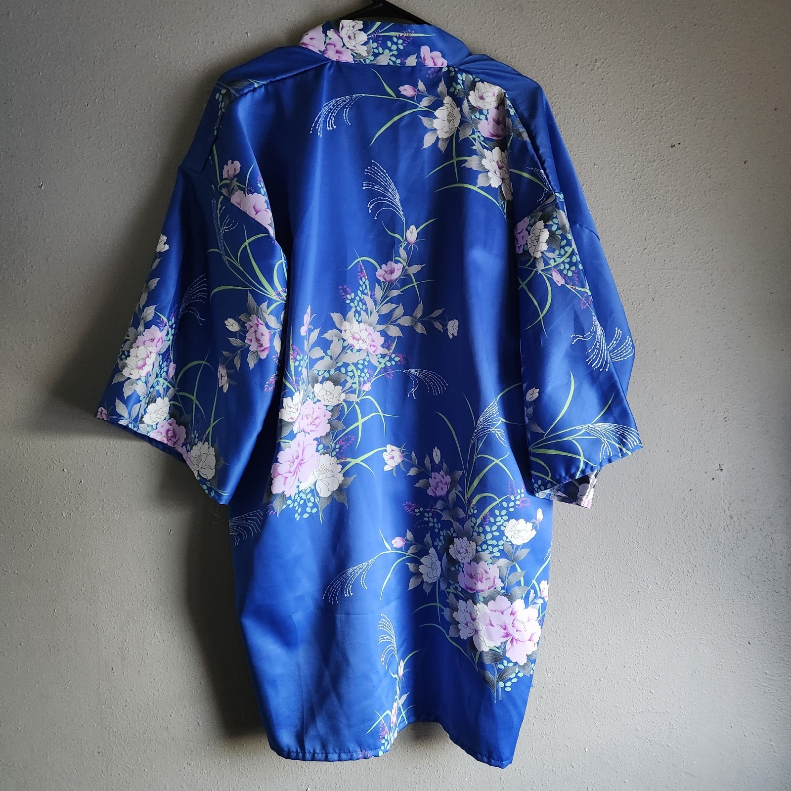 как выглядит Vintage Japanese Kimono Robe Blue Floral Japan Made Silky 1 Size Artsy Festival фото