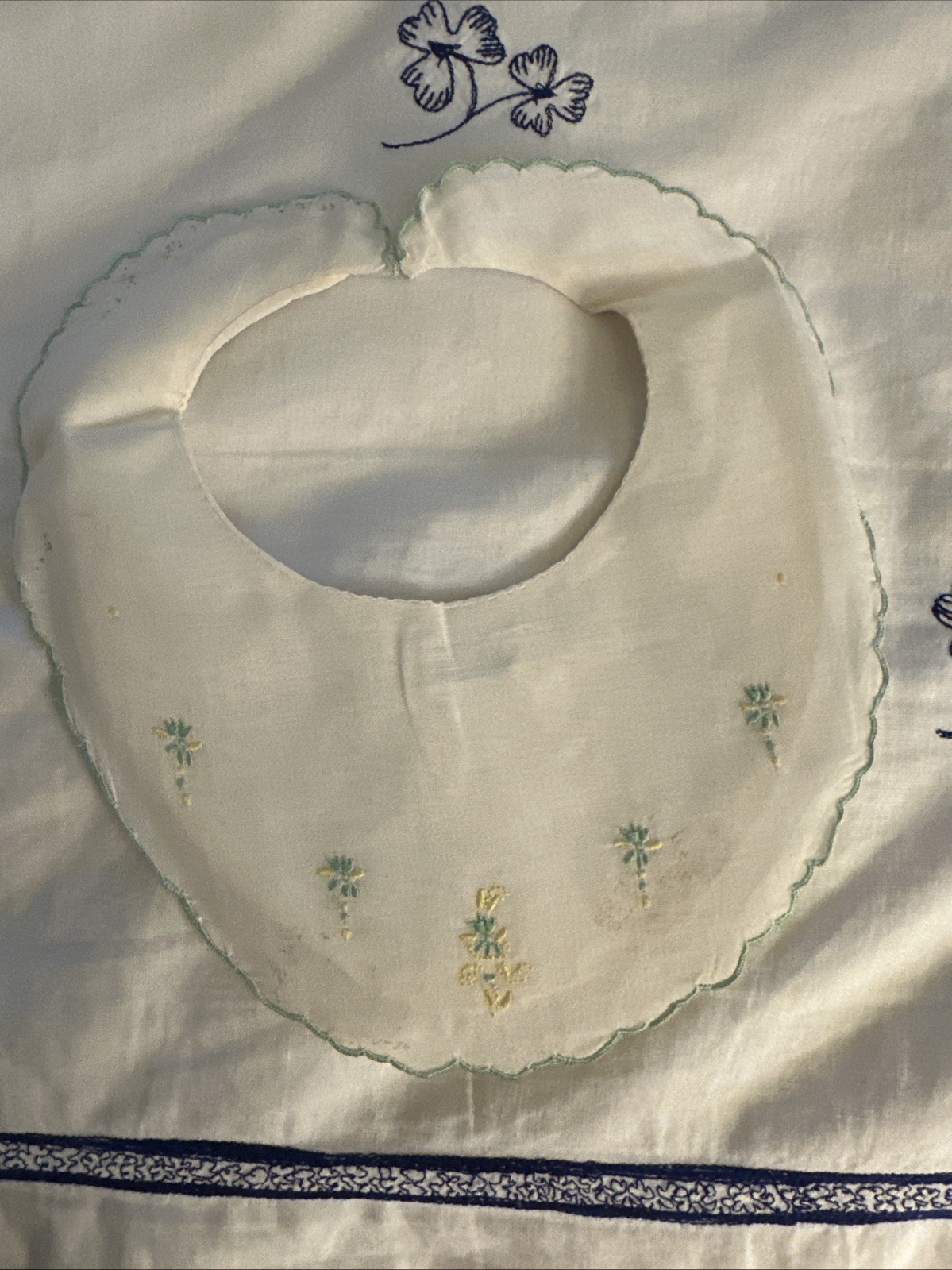 как выглядит Vintage Philippines Hand Made Baby Girl Dress Slip Bib Set Green NEW in BOX фото