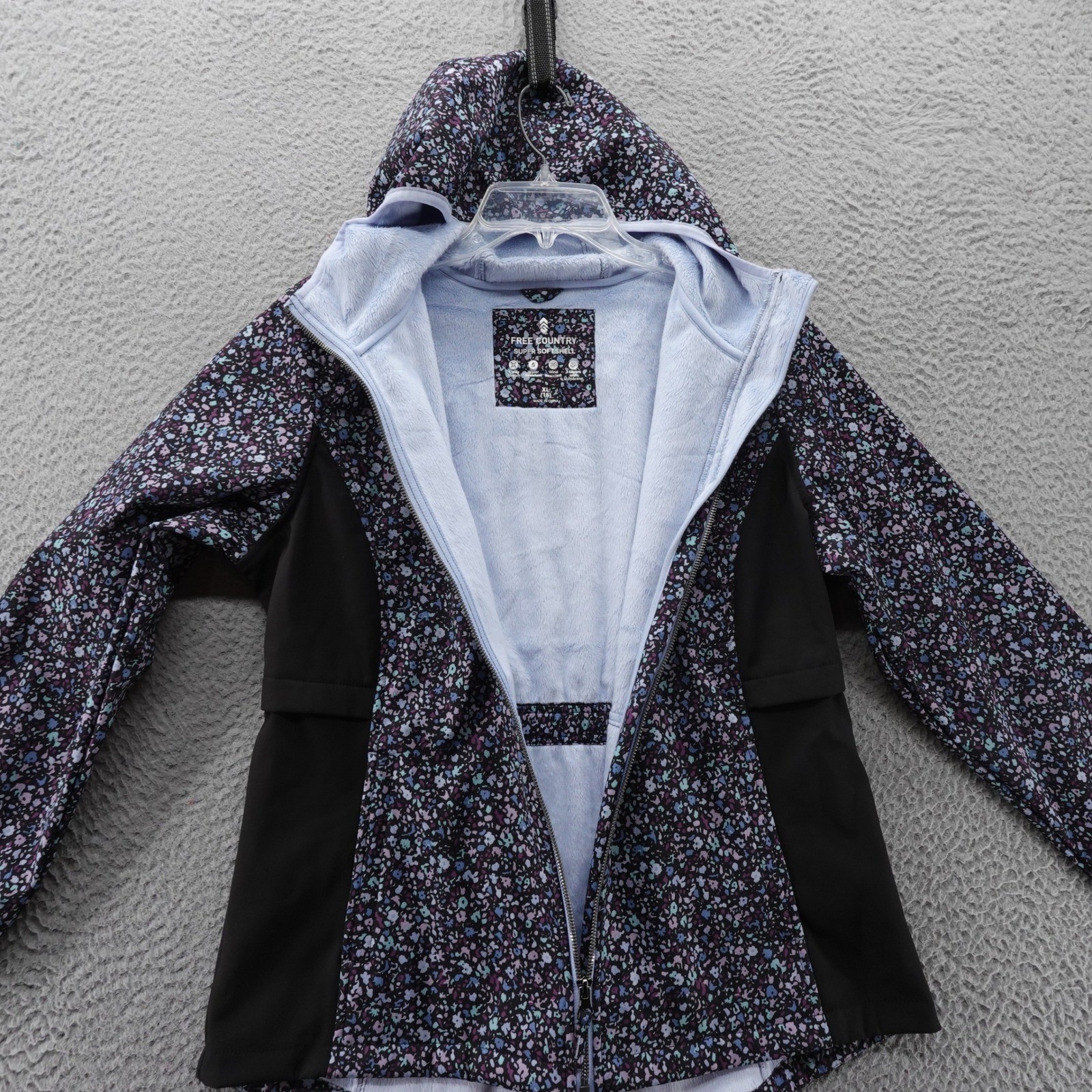 Free Country Girls XL Floral Print Softshell Jacket Hooded Rain Wind Resistant