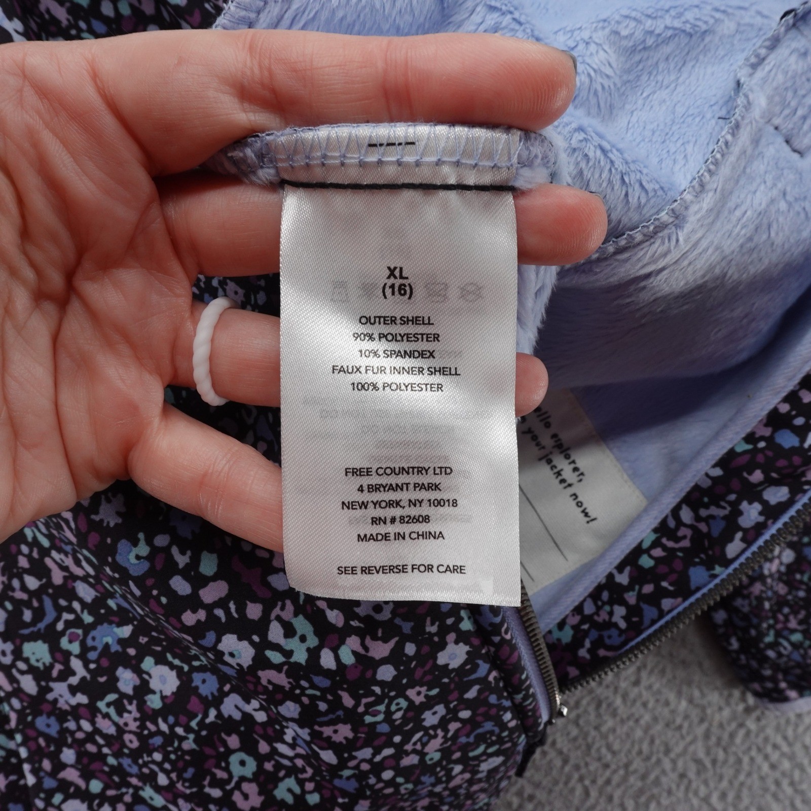 как выглядит Free Country Girls XL Floral Print Softshell Jacket Hooded Rain Wind Resistant фото