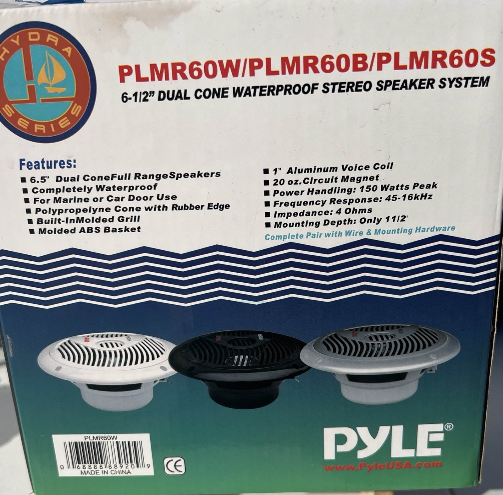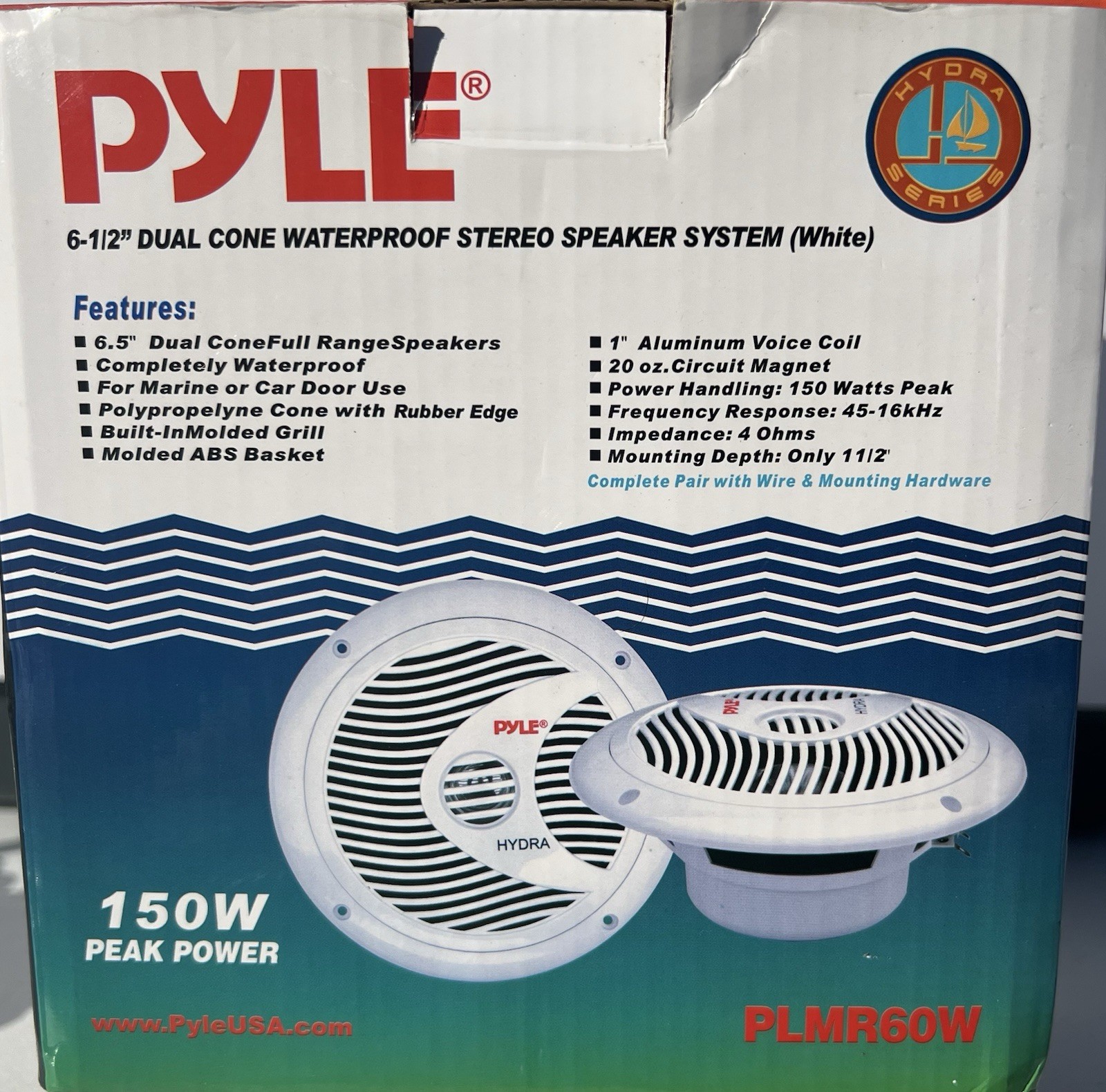 как выглядит Pyle PLMR61W Hydra Series 6.5" 120-Watt Dual-Cone Marine Speakers White фото