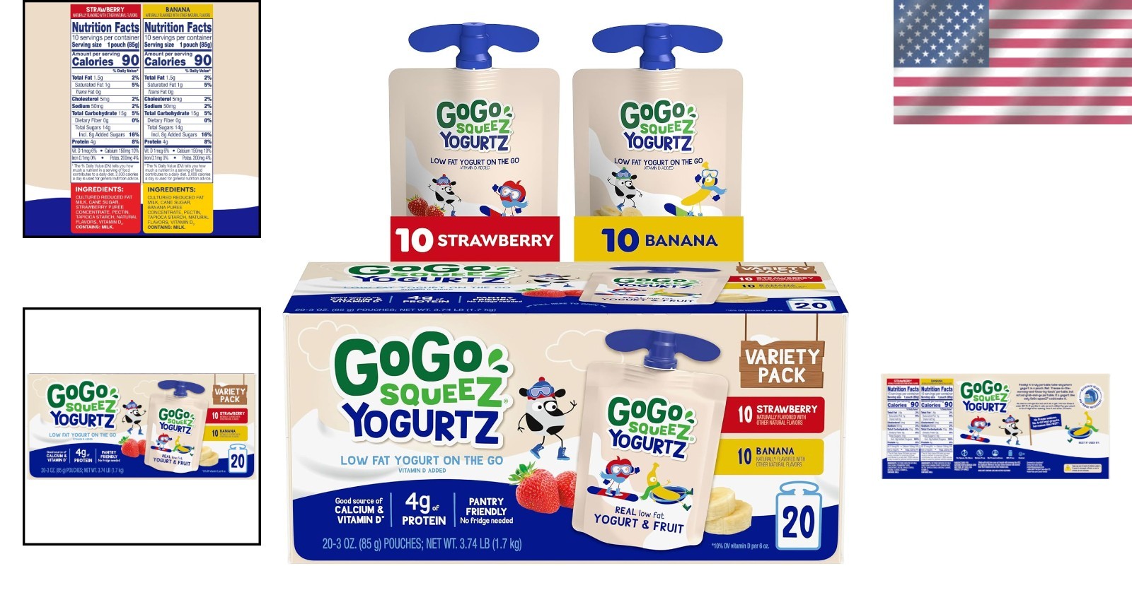 Kids Yogurt Fruit Snack Pack 20 Pouches 3oz Non-GMO Gluten Free Nut Free